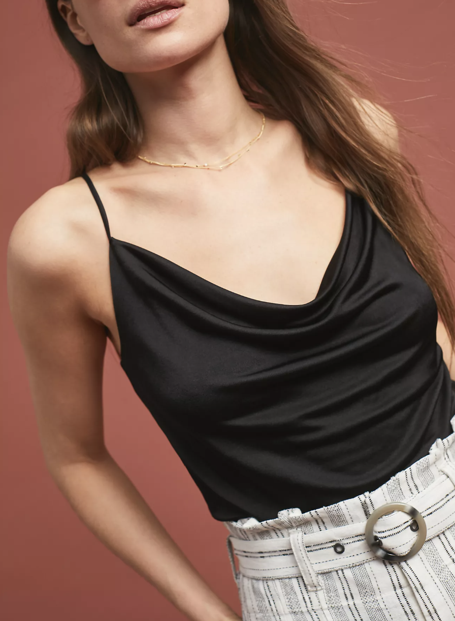 Anthropologie Black Silk-Like Sleeveless Claremont Draped Top