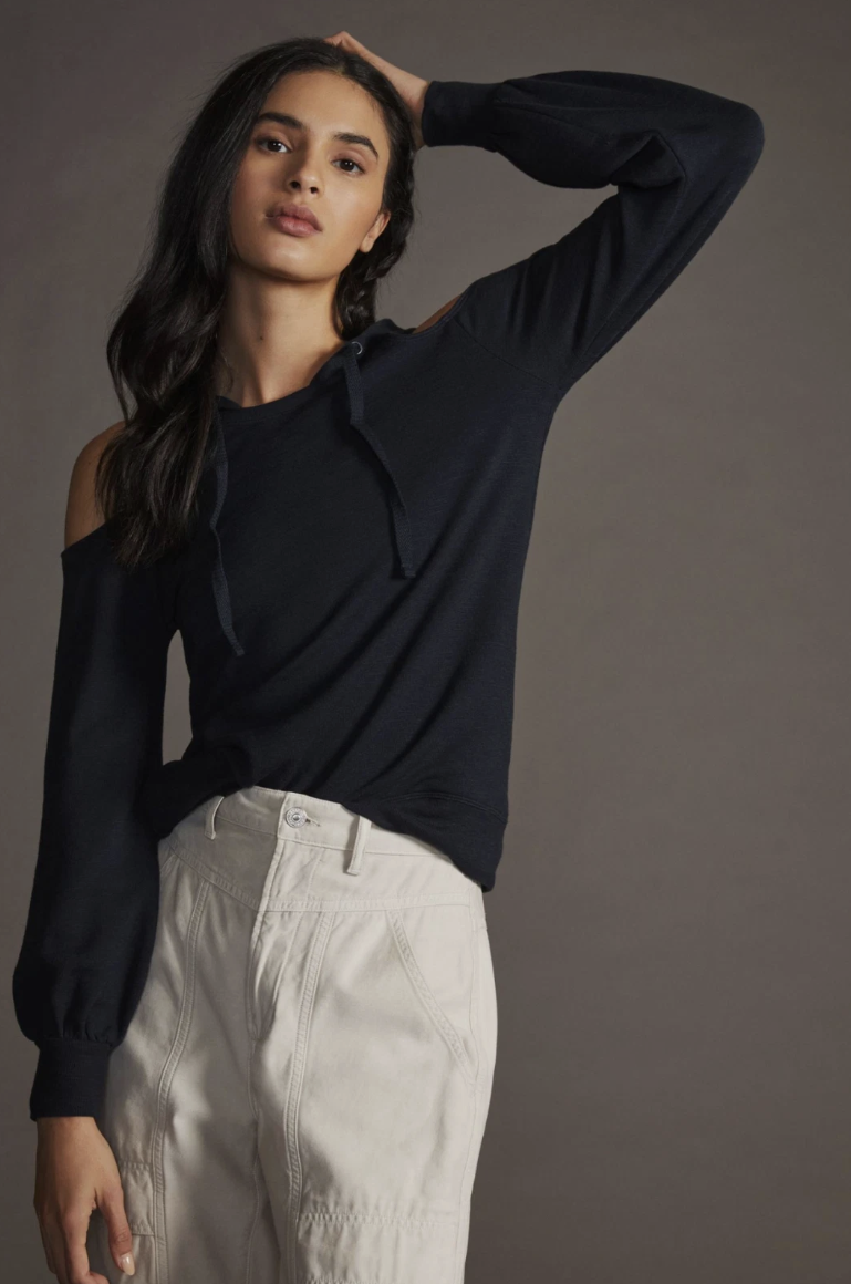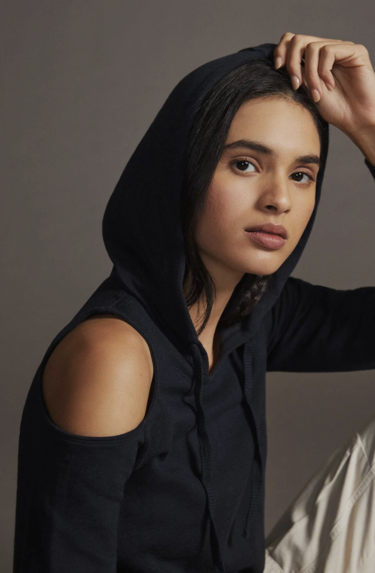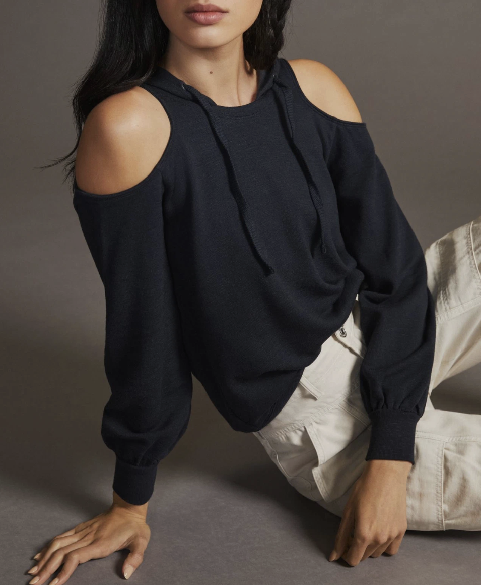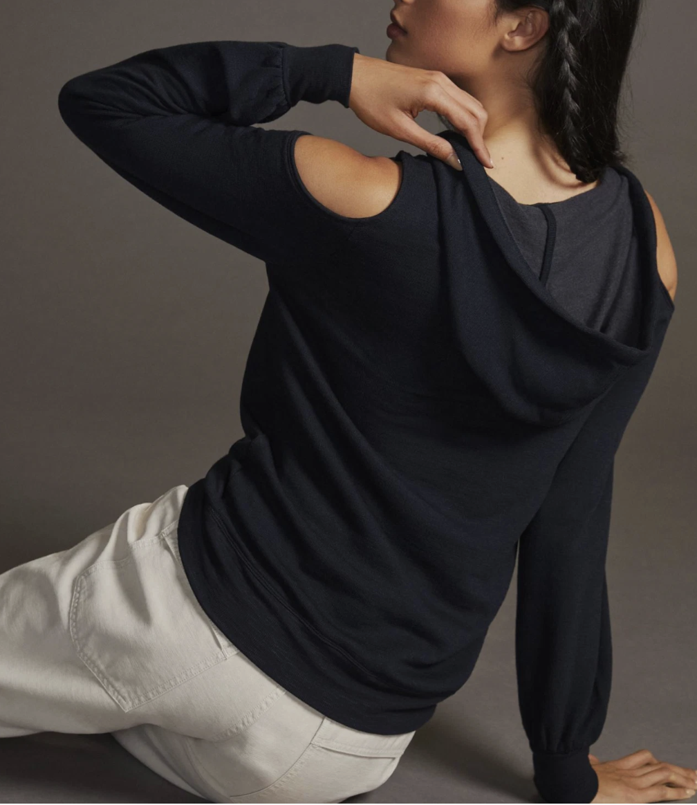 Anthropologie Daily Practice Black Open Shoulders Isla Hoodie