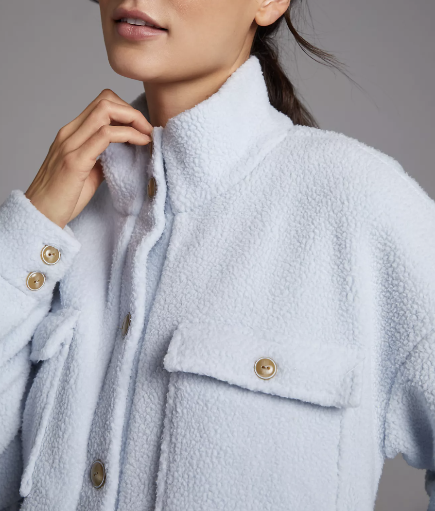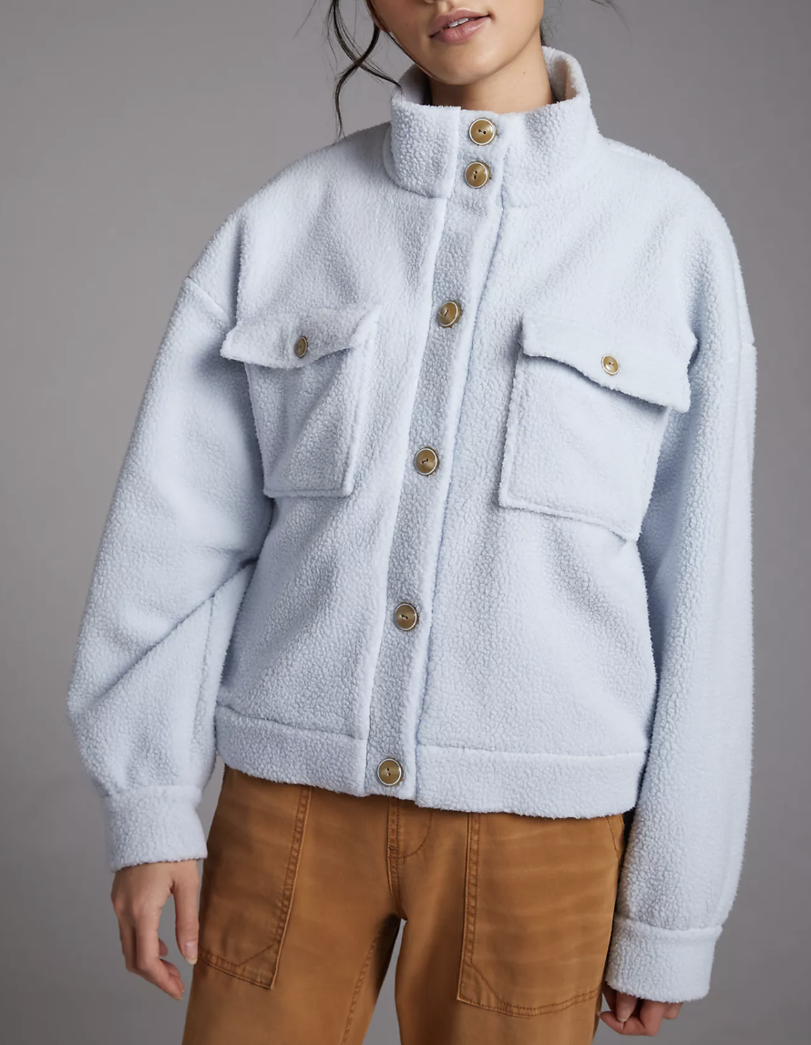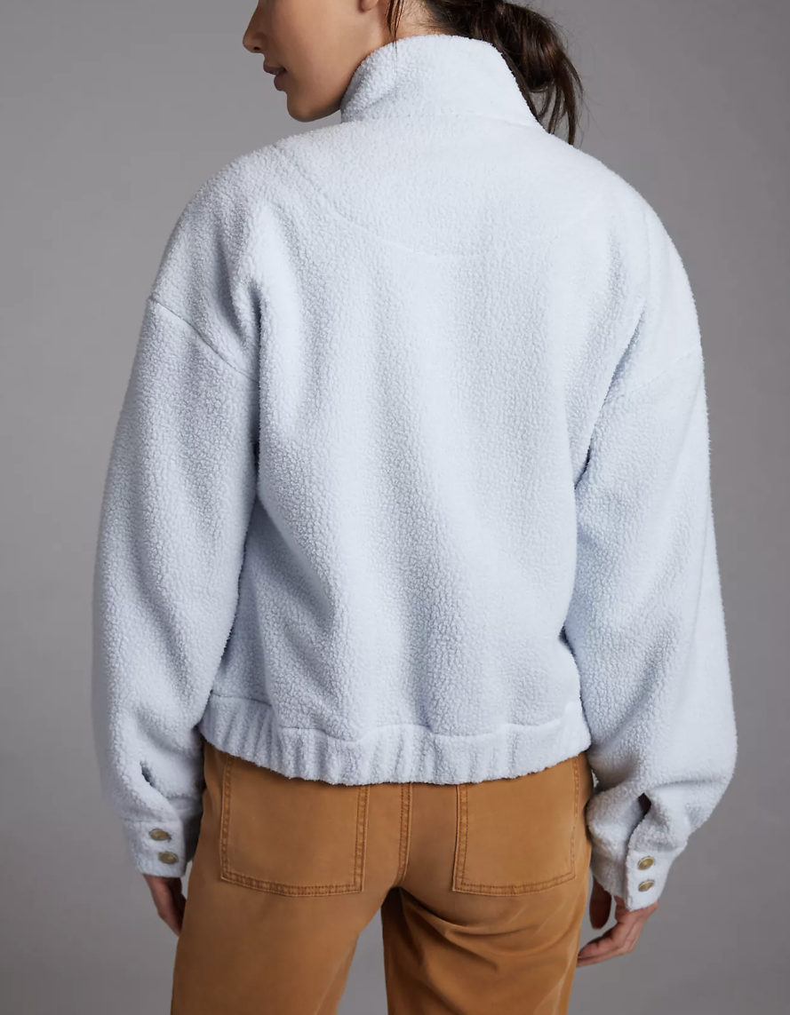 Anthropologie Daily Practice Light Blue Long Sleeve Fleece Bomber Jacket