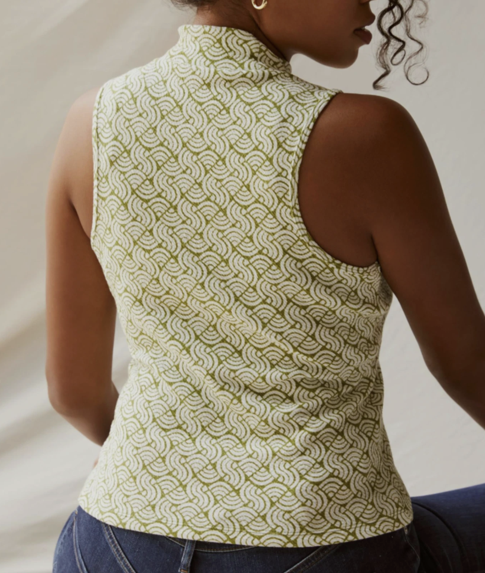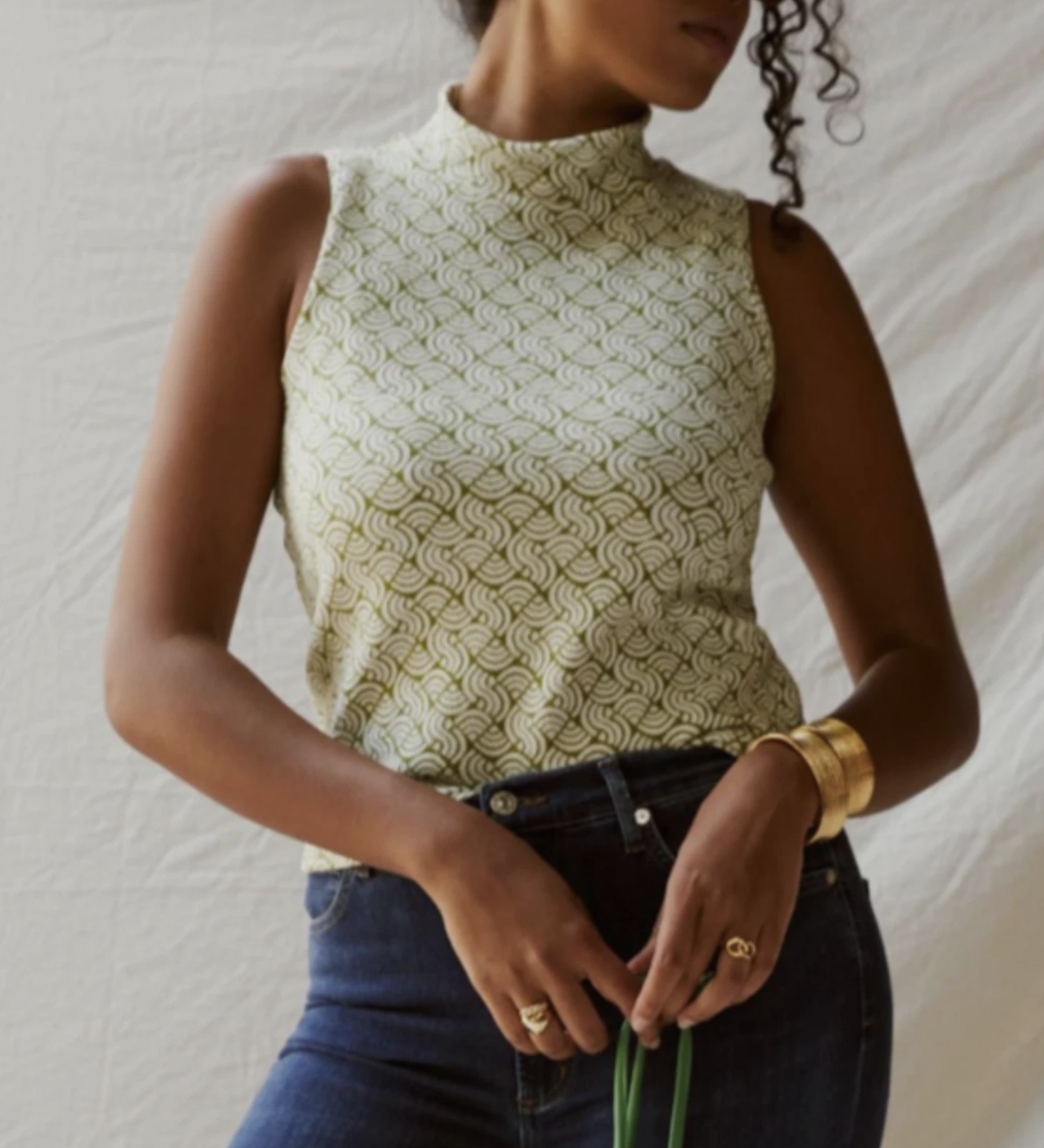 Anthropologie Maeve Green White Structured Mock Neck Top