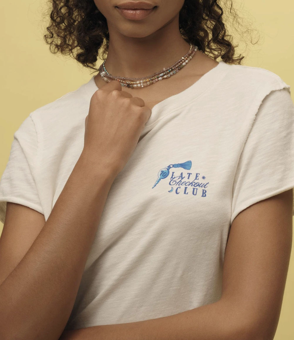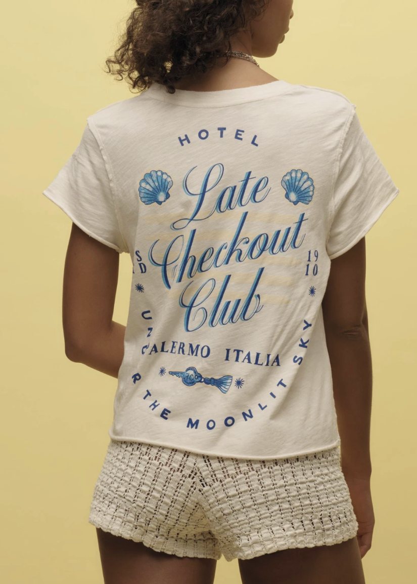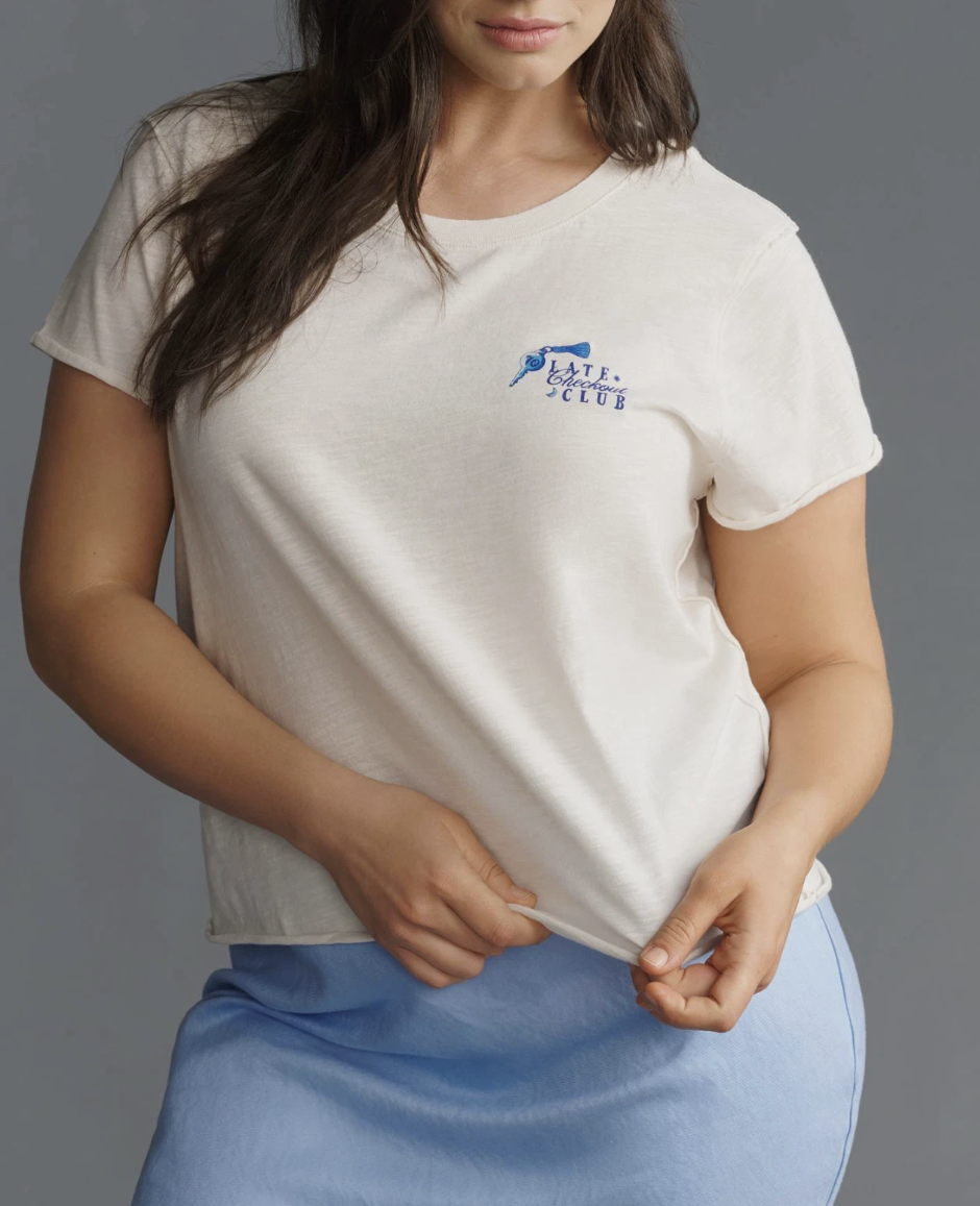 Anthropologie Maeve Ivory Late Checkout Club Short-Sleeve Graphic Tee