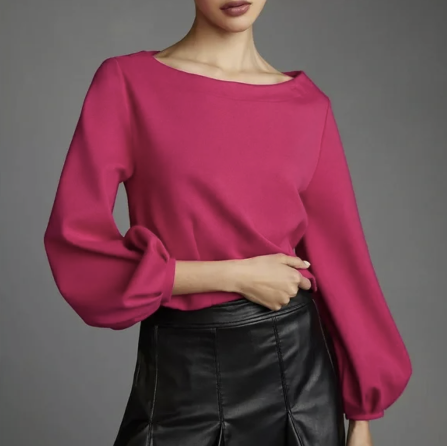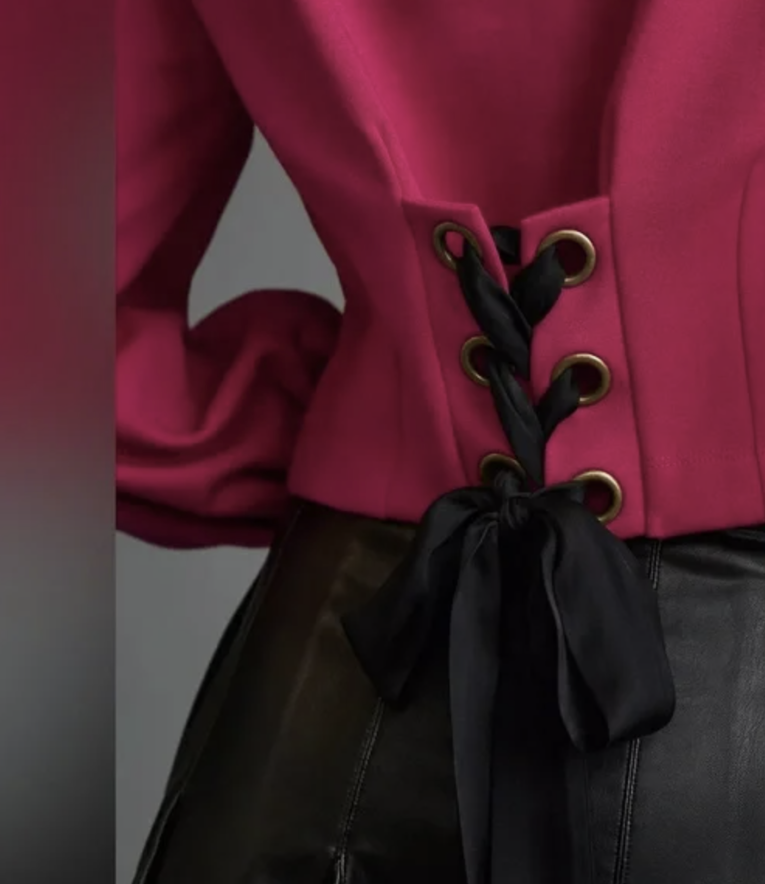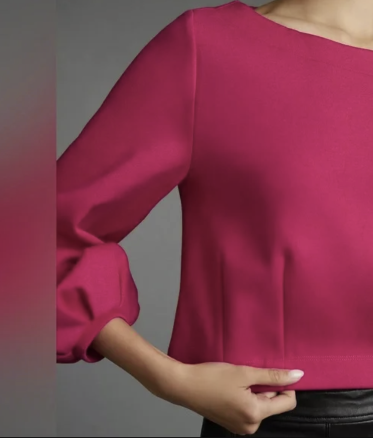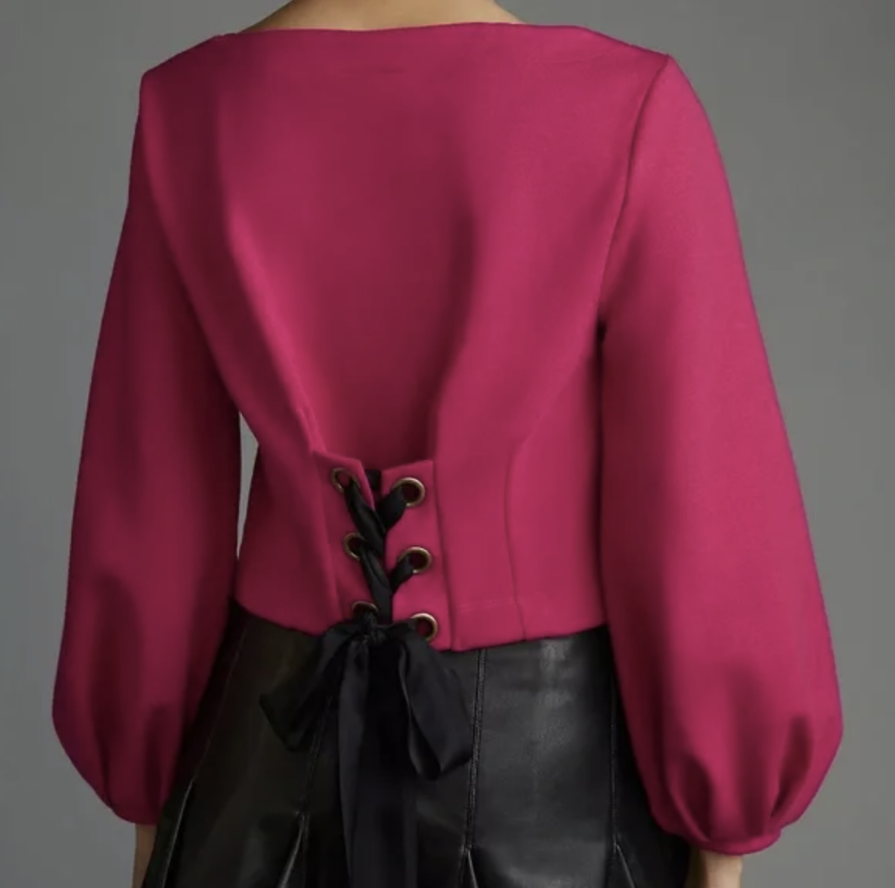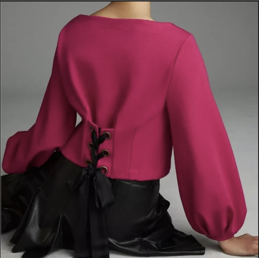 Anthropologie Maeve Raspberry Balloon Sleeve Tie Back Corset Sweatshirt Top