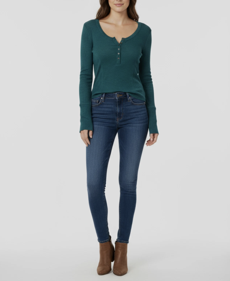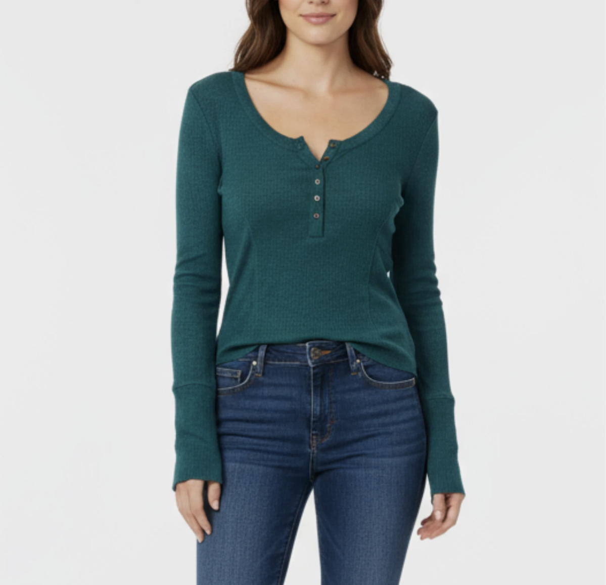 Anthropologie Pilcro Green Andie Ribbed Tissue Henley Top