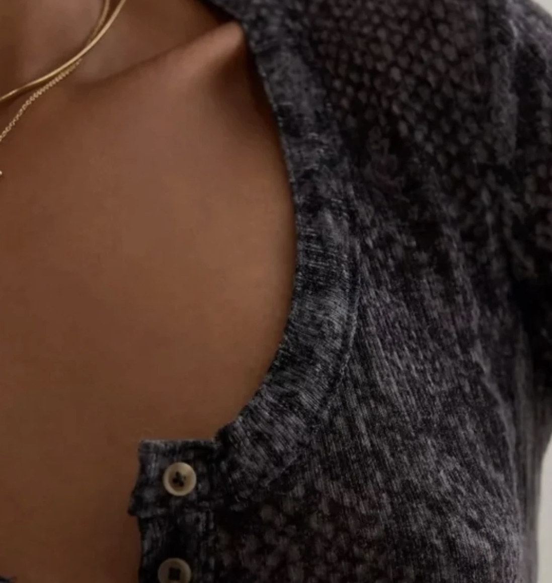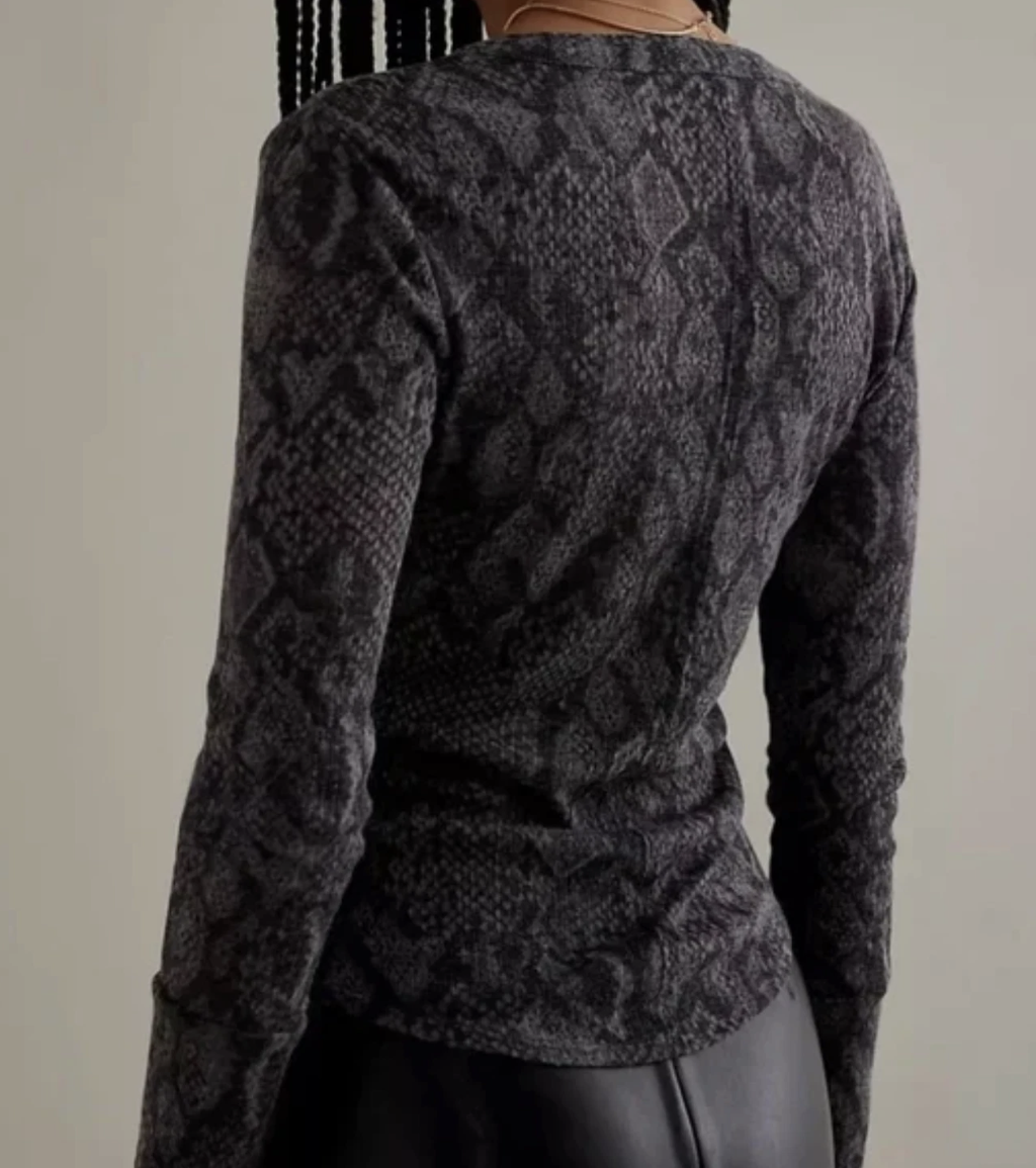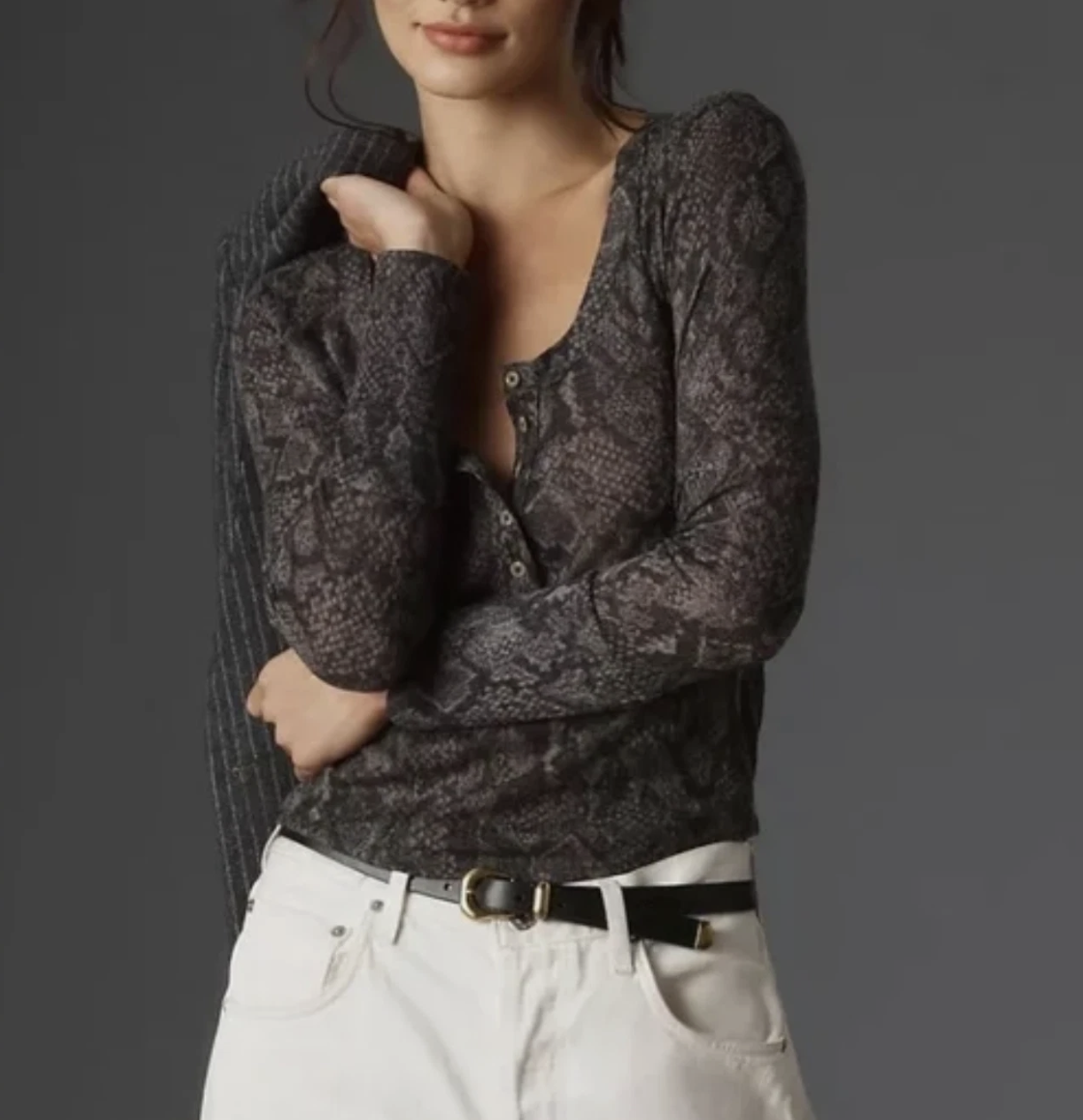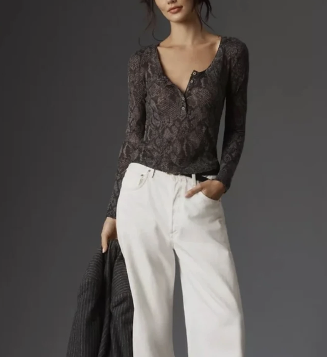 Anthropologie Pilcro Grey Snake Print Andie Ribbed Tissue Henley Top