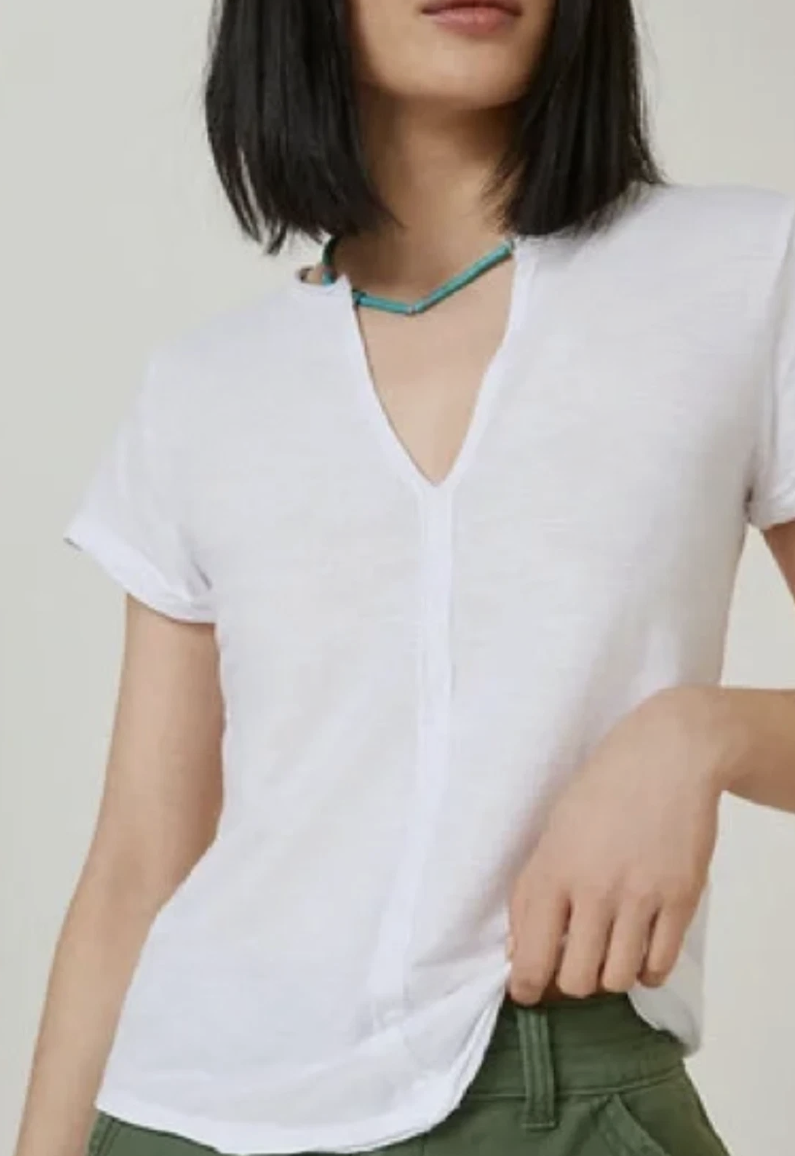 Anthropologie Pilcro White Short Sleeve Spliced-Neck Tee