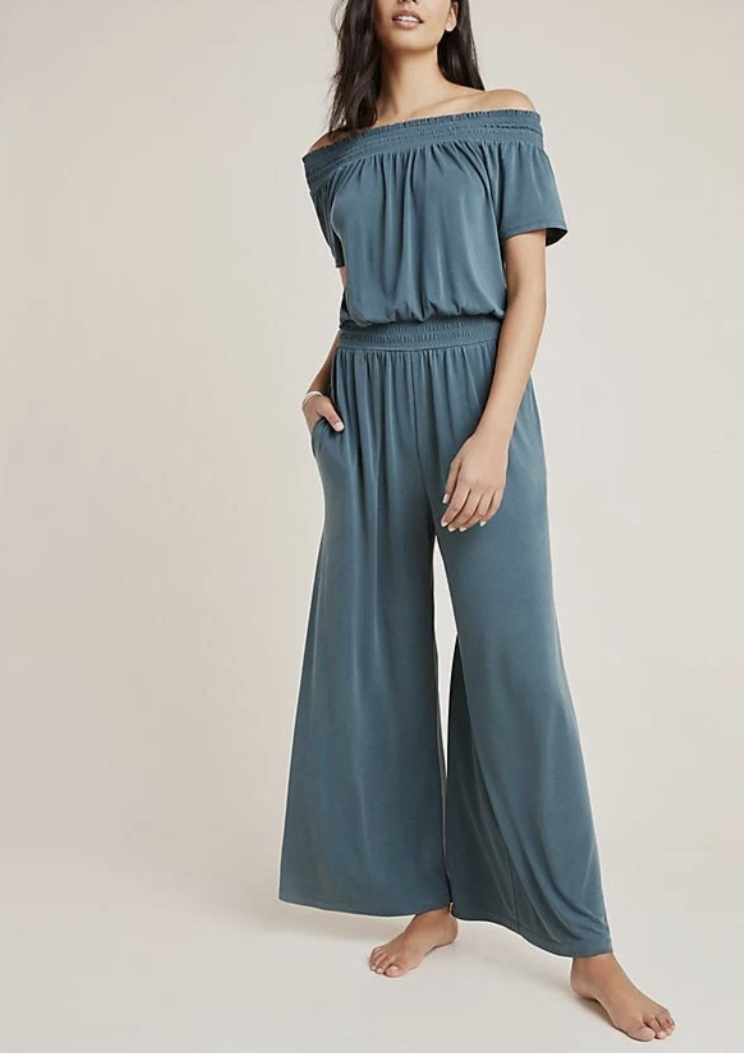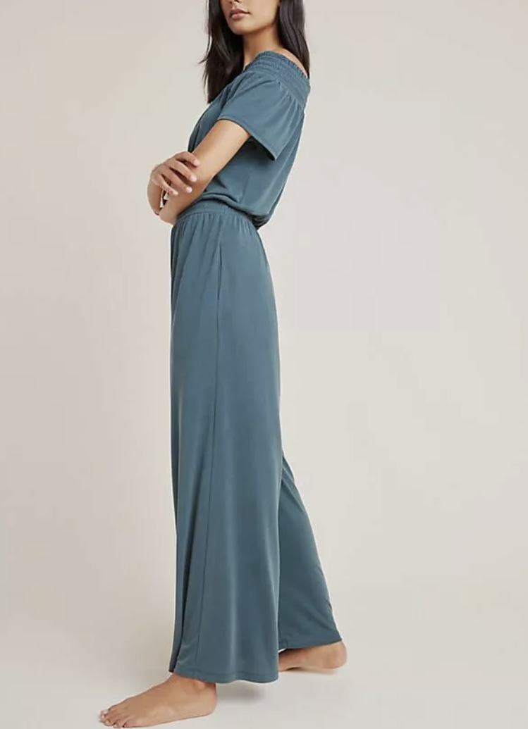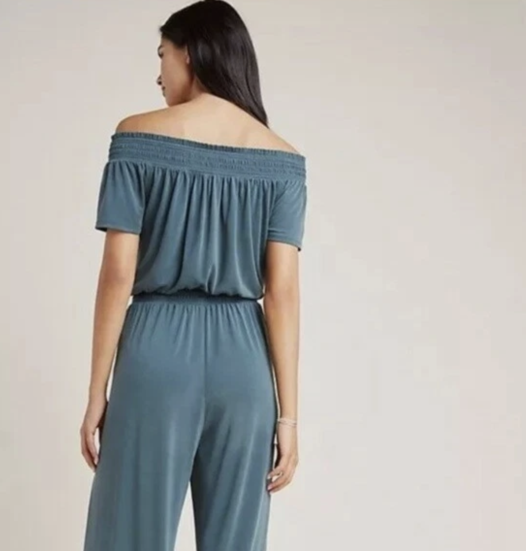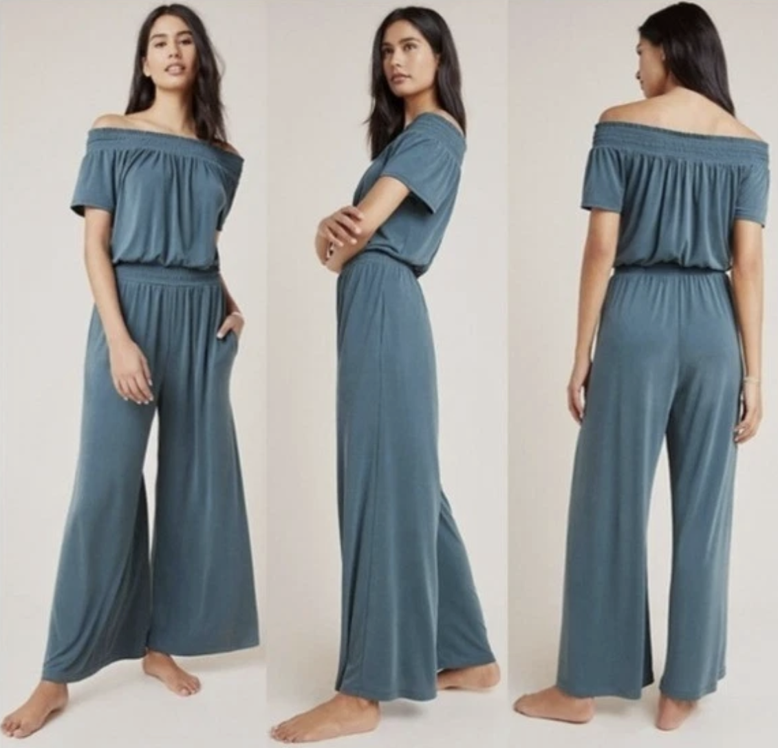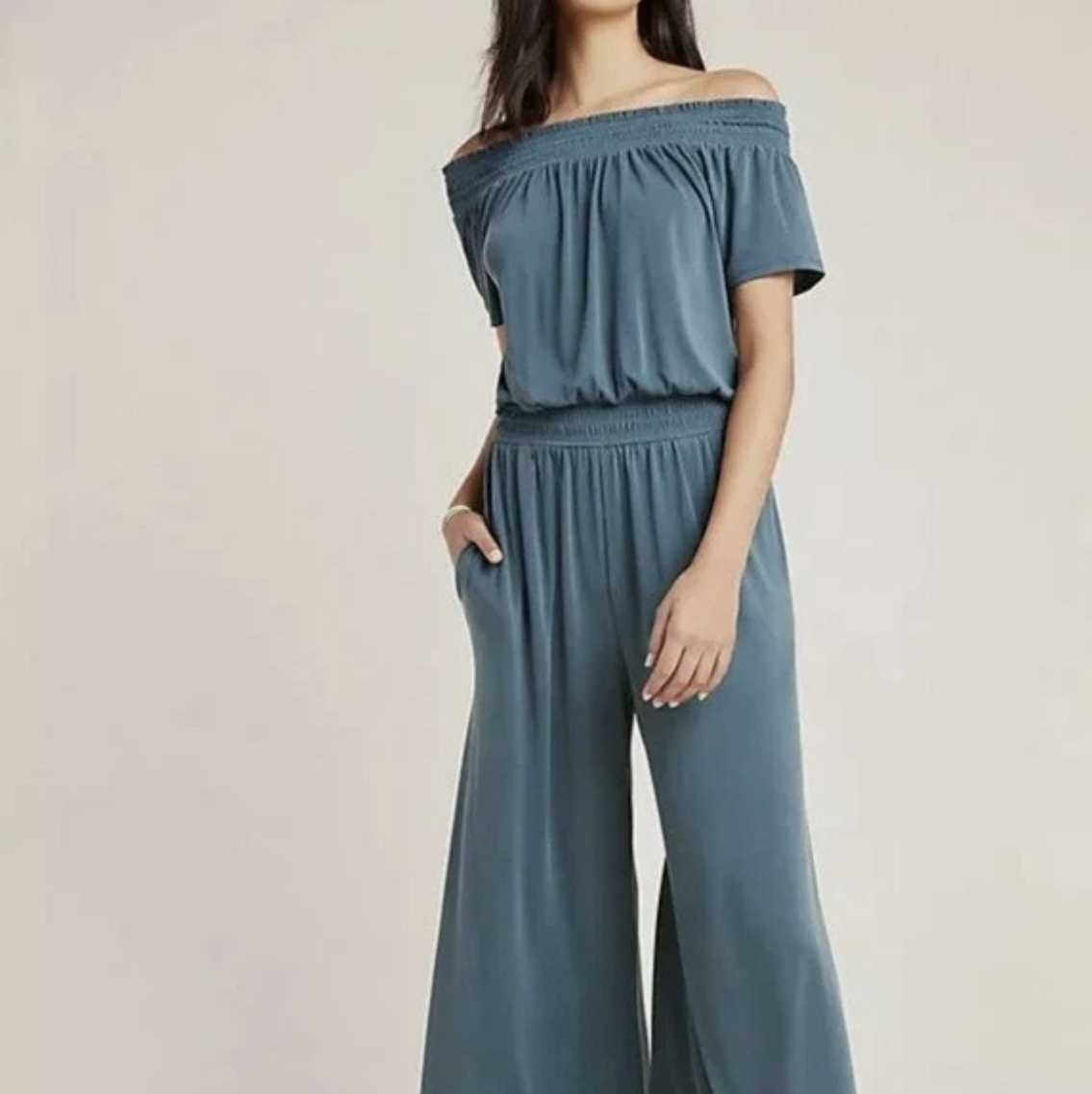 Anthropologie Saturday Sunday Teal Blue Rebecca Wide Leg Smocked Jumpsuit