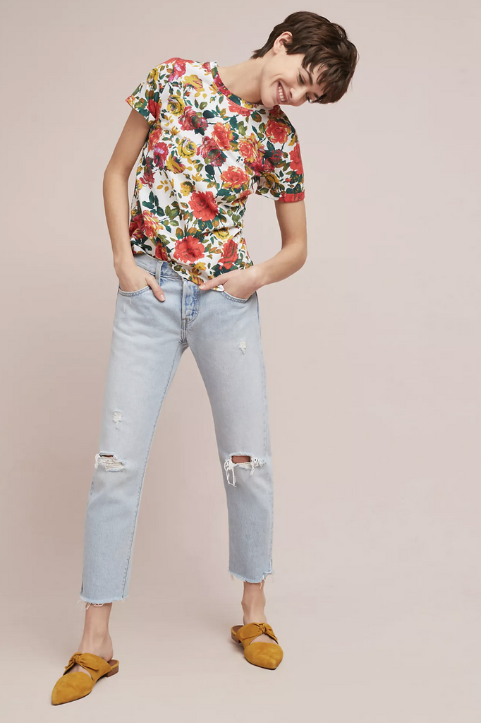 What better way to welcome brighter and warmer weather than with a floral tee? This Printemps style is perfect - it has a simple silhouette that's energised with a colourful rose print and will bring instant impact to pair of cropped jeans and pointed flats.