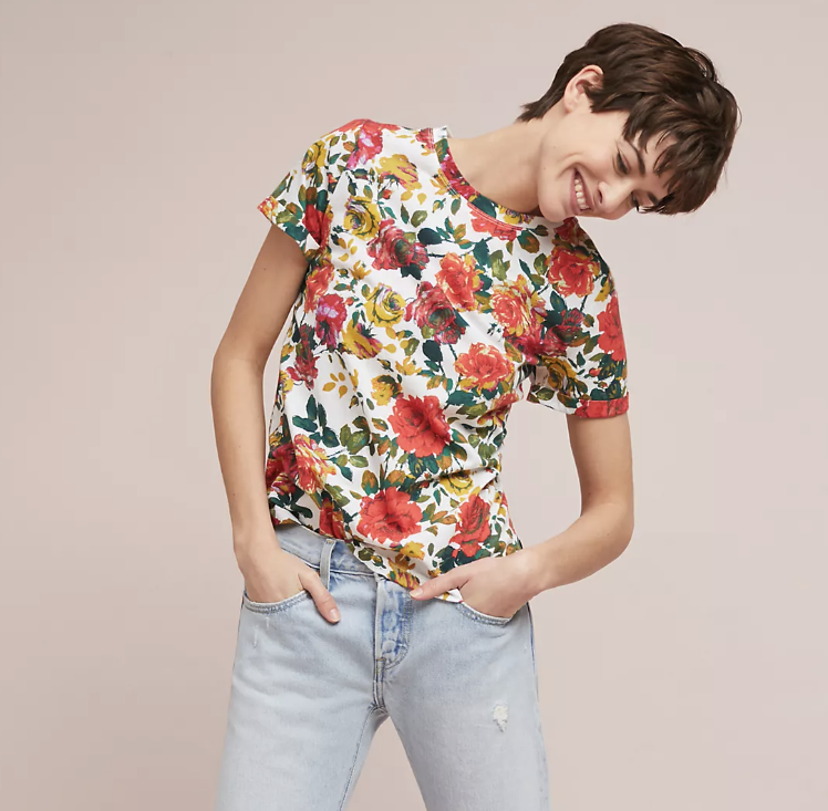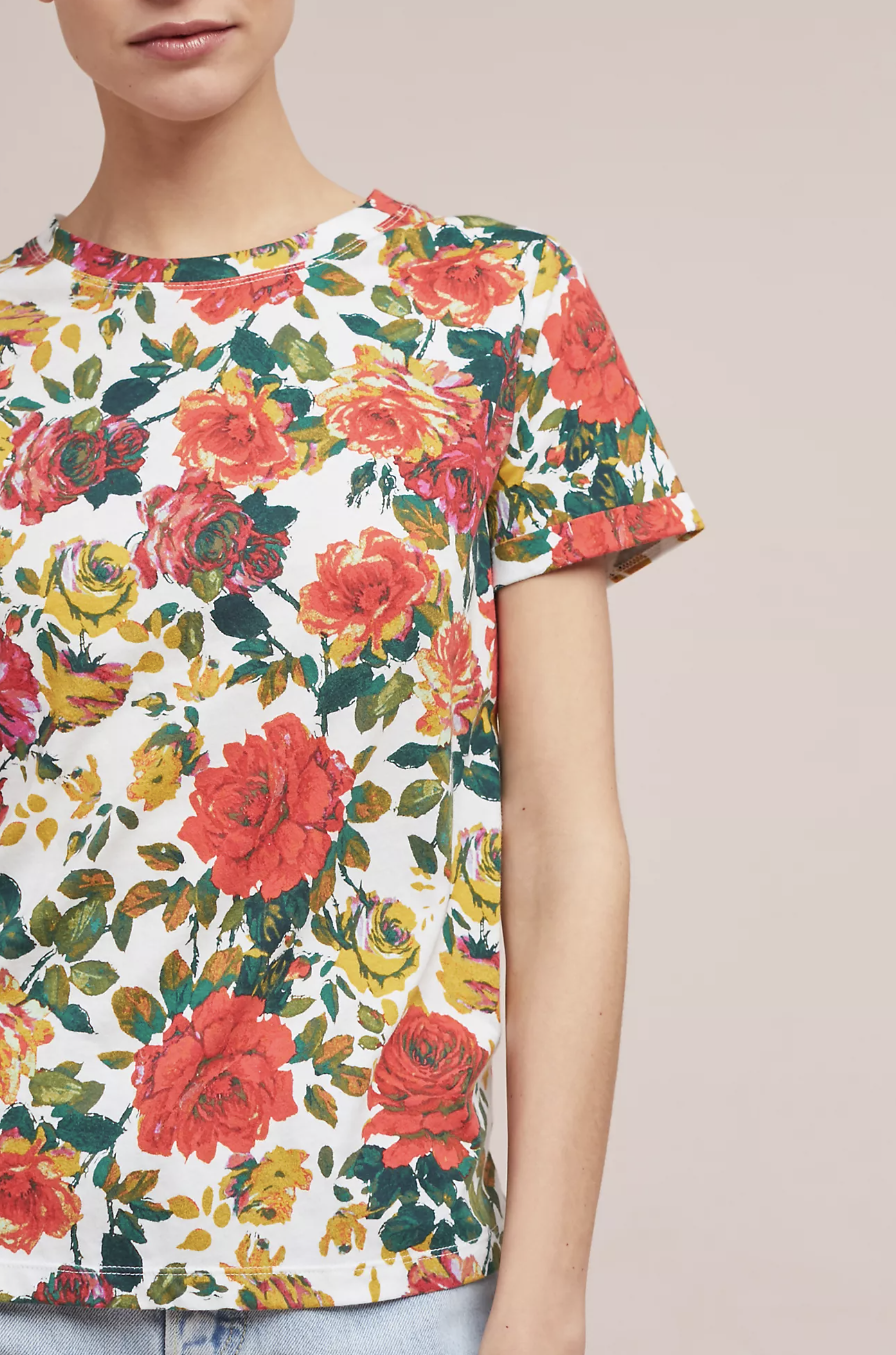 Meadow Rue by Anthropologie Floral Printemps Printed Shor Sleeve Tee