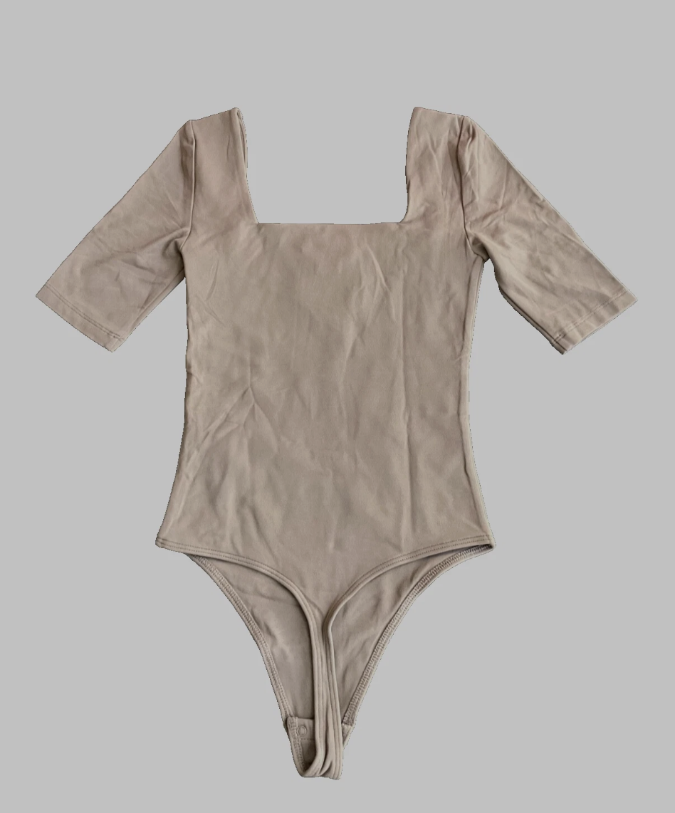 This is a square-neck, half-sleeve bodysuit with a thong-cut bottom and a hidden bra strap holder. It's made with Babaton's signature Contour — luxe, ultra-flattering fabric coveted for its smoothing effect and second-skin feel. Essential for every body.