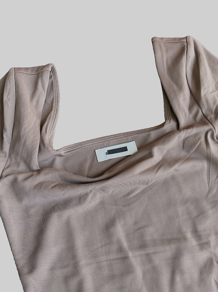 Aritzia Babaton Contour Deep Taupe Half Sleeve Square Neck Bodysuit