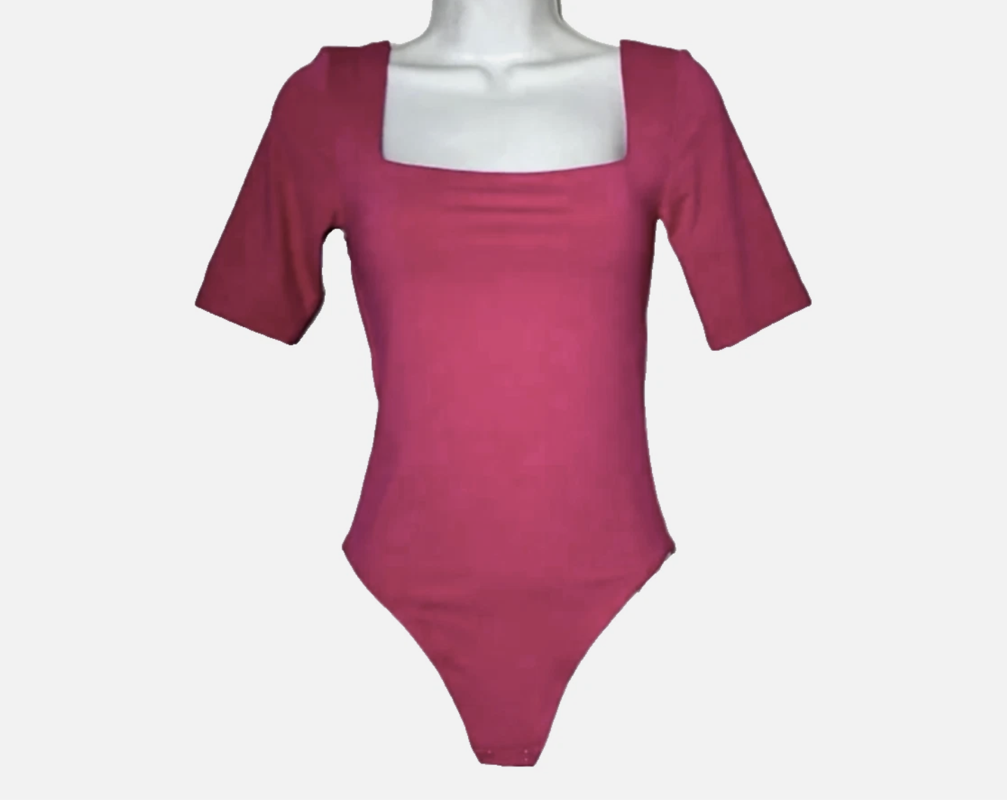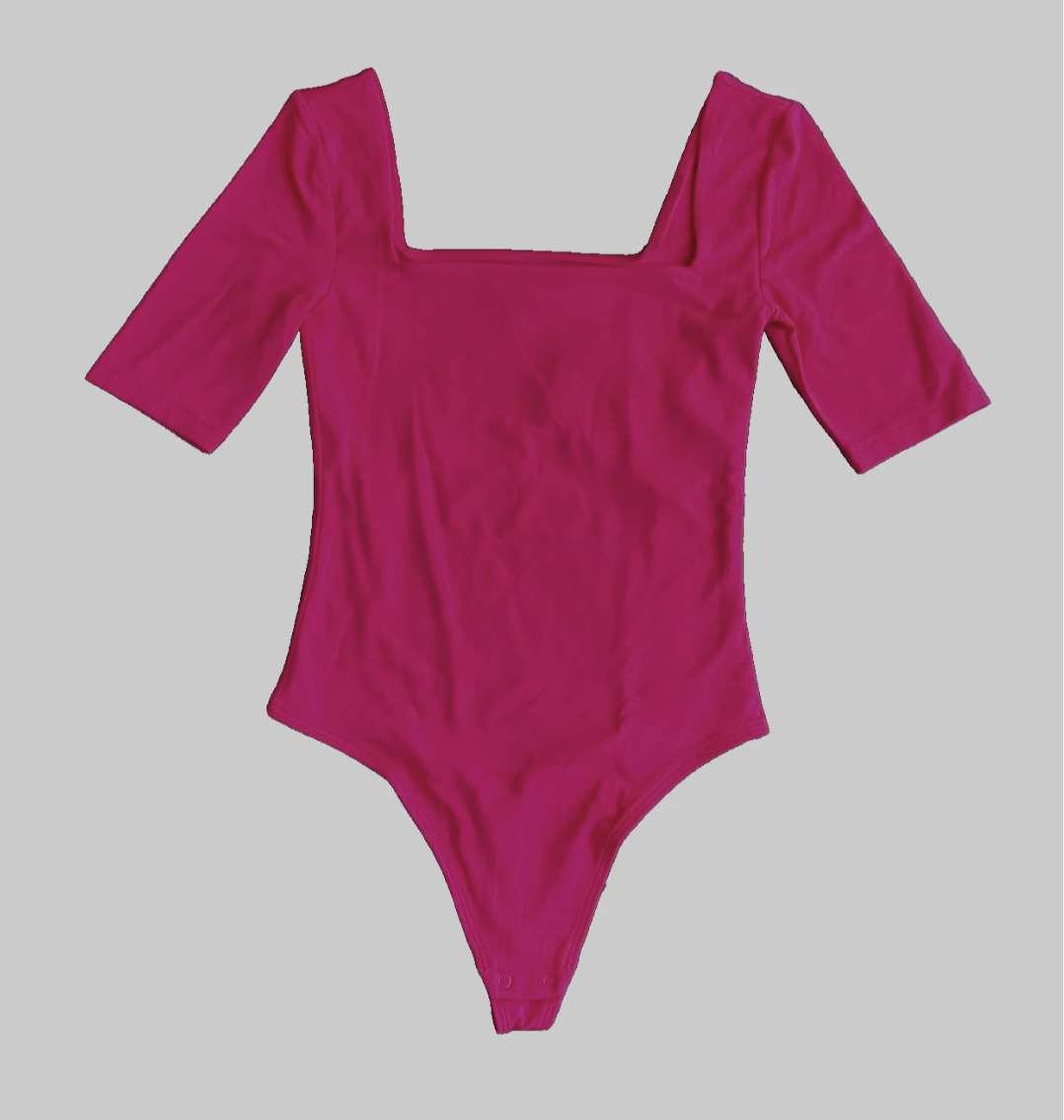 Aritzia Babaton Contour Magenta Half Sleeve Square Neck Bodysuit