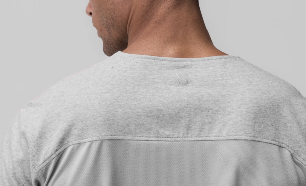 Standard fit shirt with hybrid performance capabilities. The main body is constructed from CottonPlus™, a high-performance cotton blend, and the shirt features a breathable Silver-Lite™ mesh back panel. The clean design lines and thin hem neckline offer a refined aesthetic. Finished with a subtle reflective wings logo on the back of the neck.