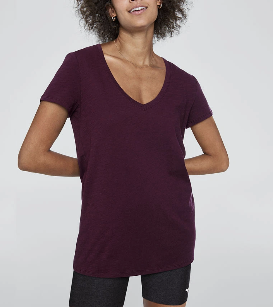Athleta Deep Burgundy Scoop V-Neck Short Sleeve Breezy Tee Top