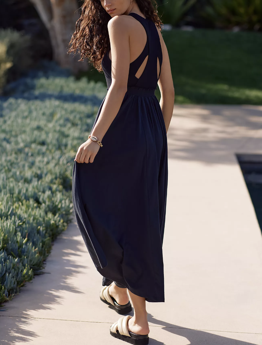 Anthropologie Daily Practice Black Sleeveless Jump-High Cutout Dress