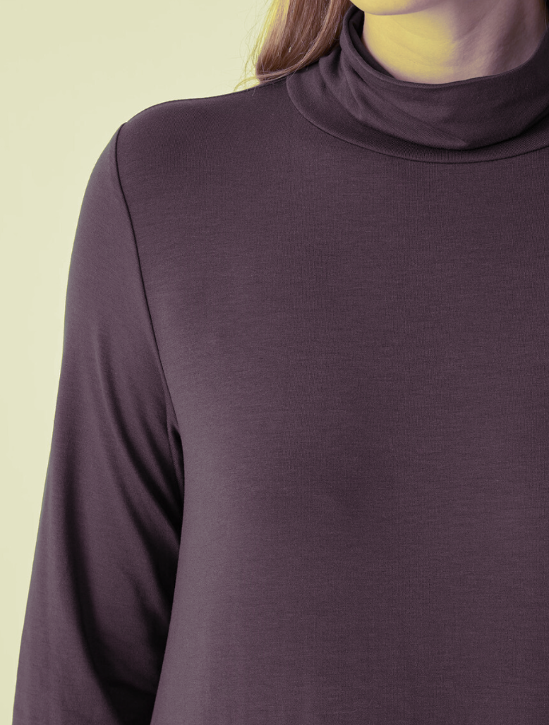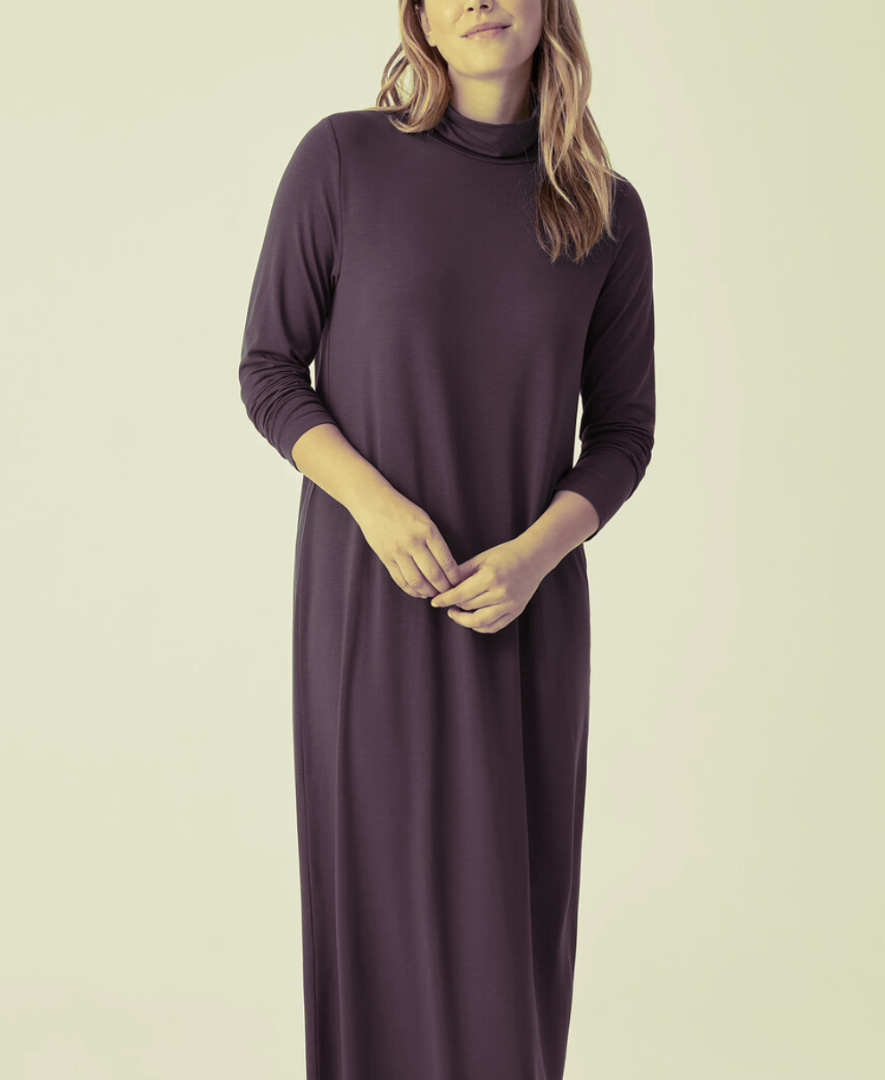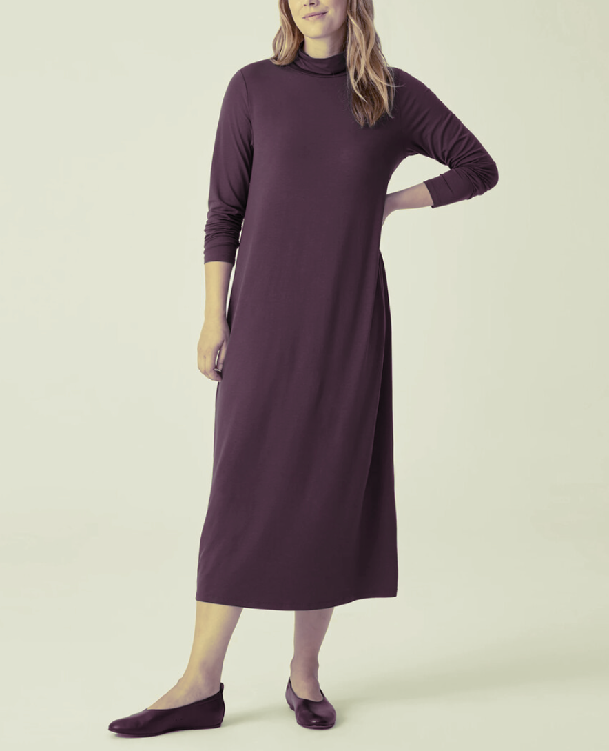 Eileen Fisher Cassis Fine Jersey Turtleneck Long Sleeve Full Length Dress
