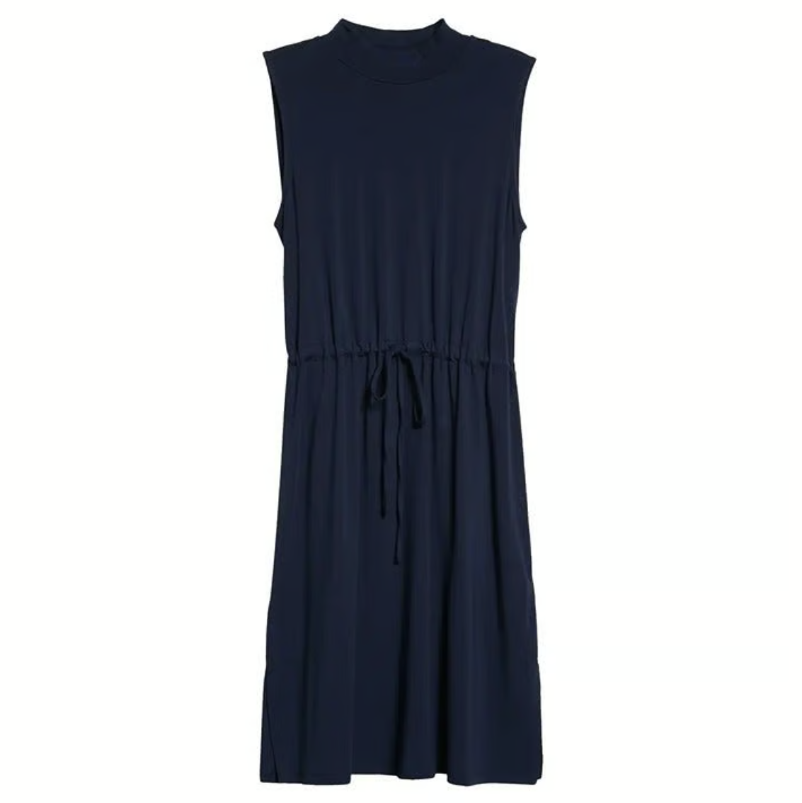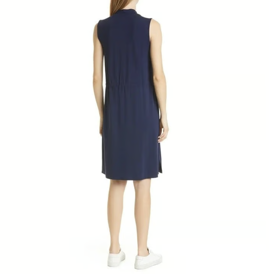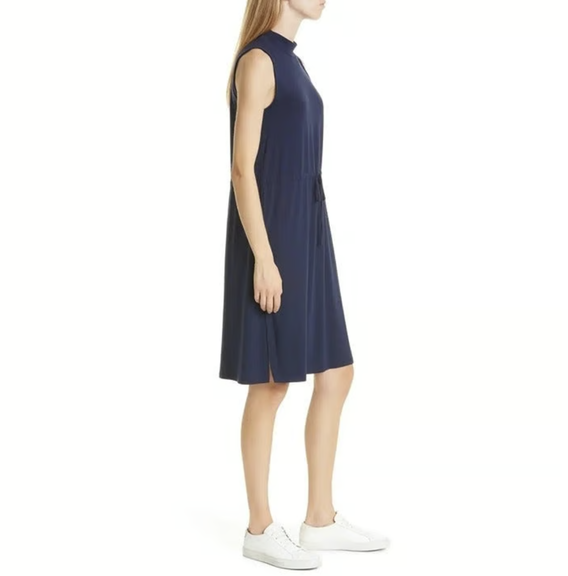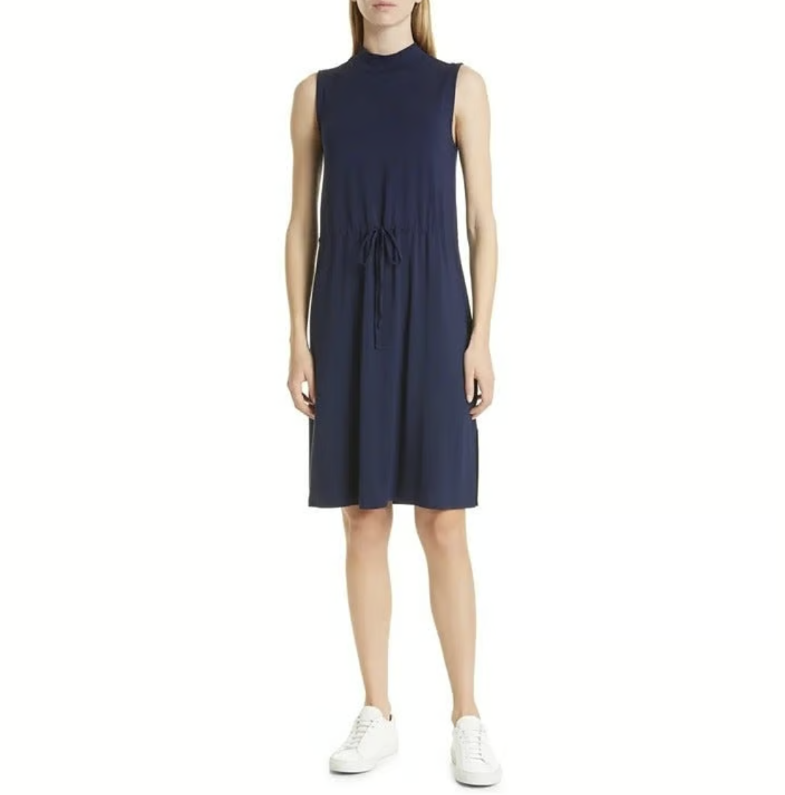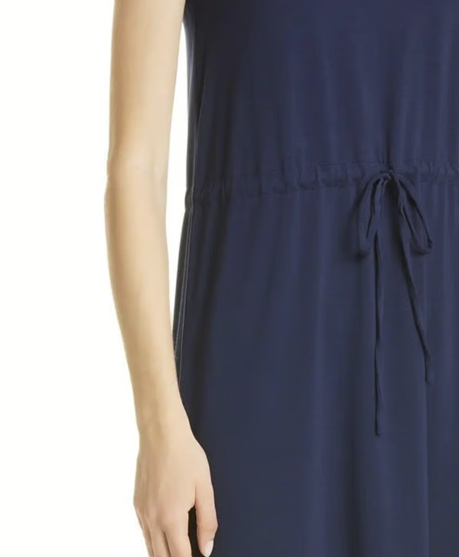 Eileen Fisher Midnight Blue Jersey Drawstring Waist Mock Neck Dress