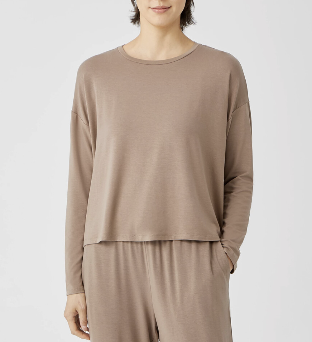Eileen Fisher Barley Fine Jersey Boxy Fit Short Length Box-Top