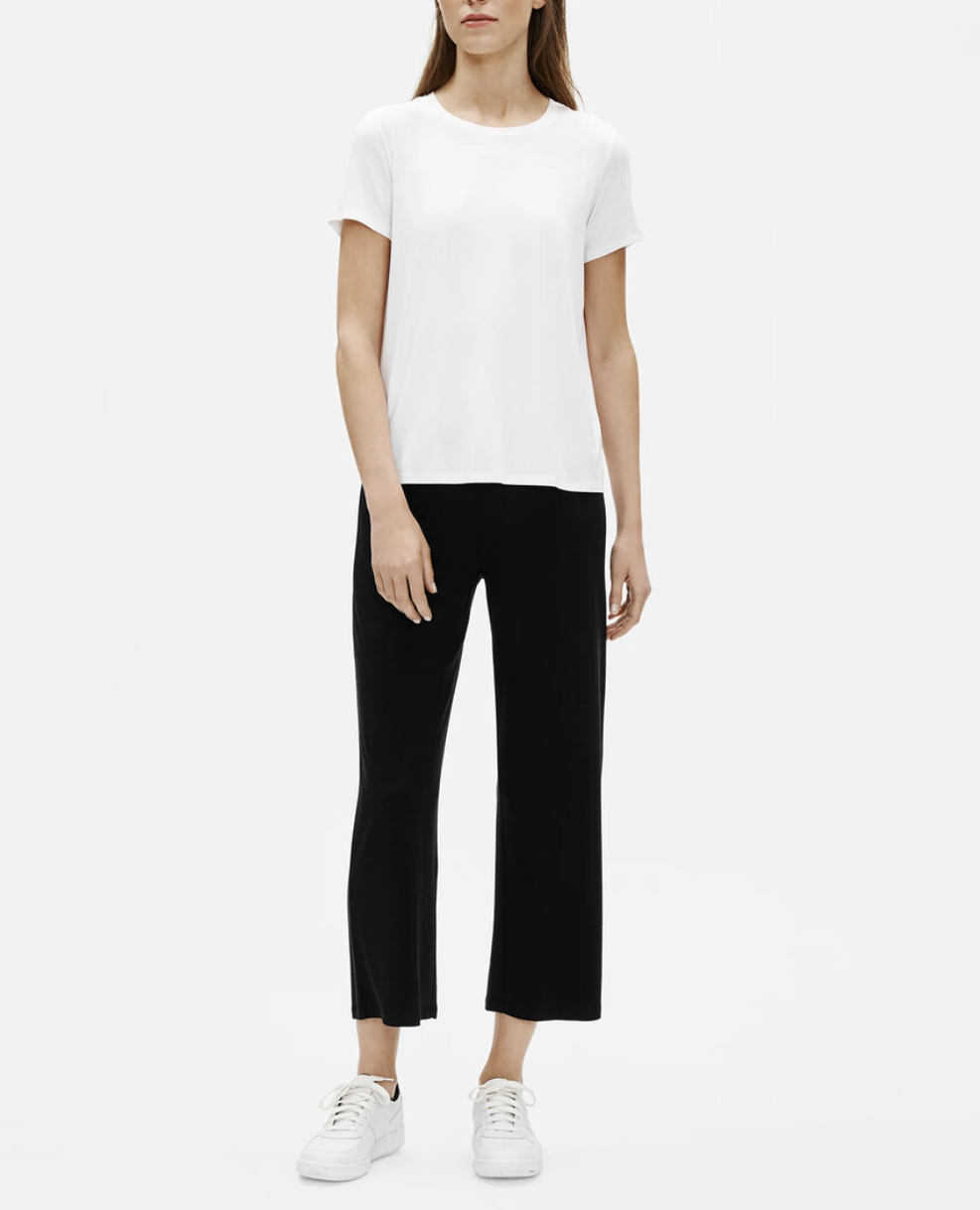Easy elegance. Our straight-leg pant in a cropped length. Sleek and sustainable in Fine Jersey.