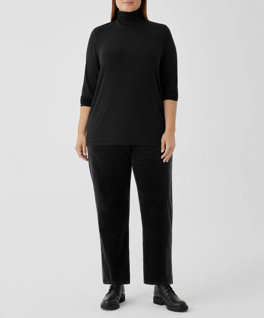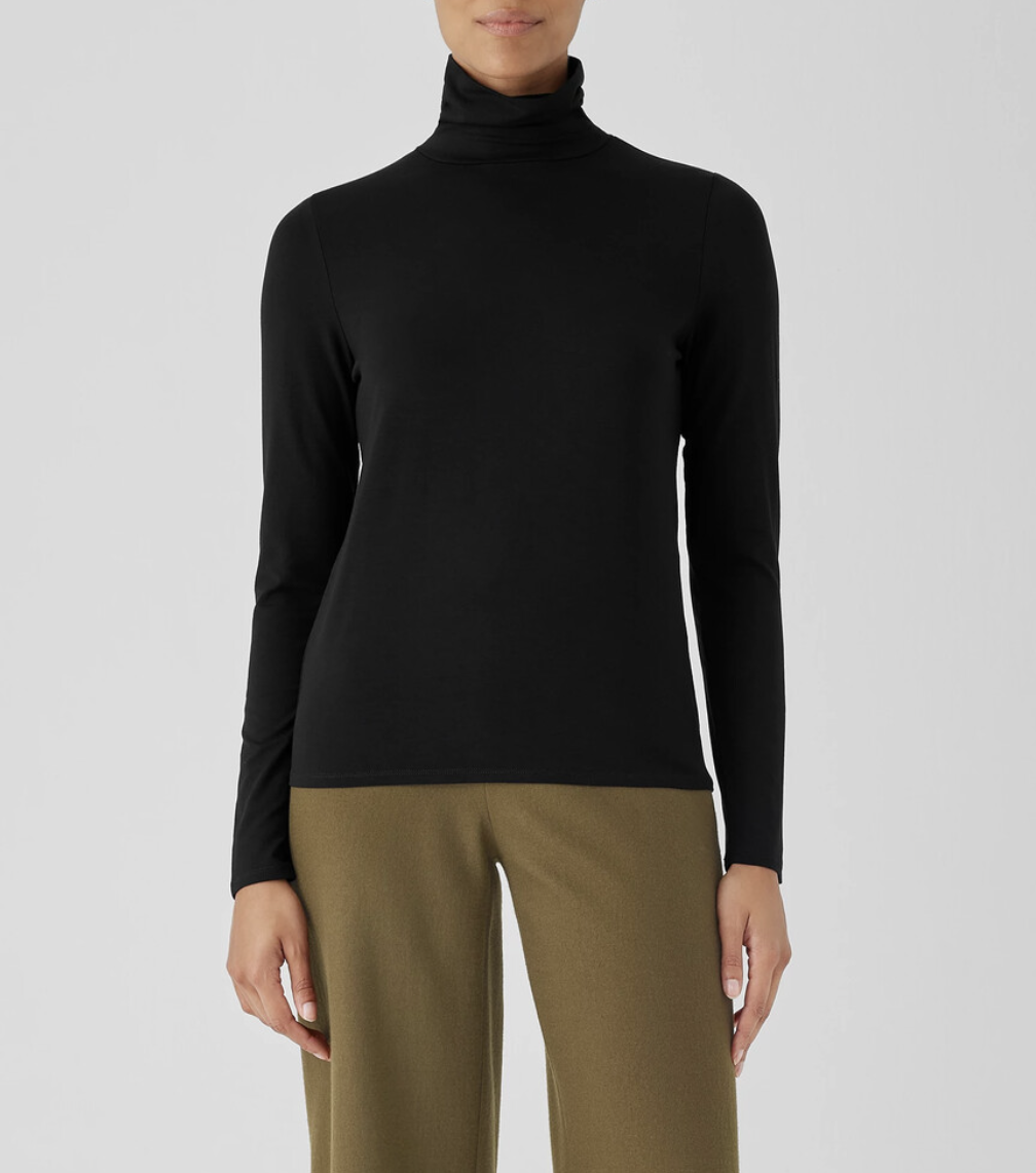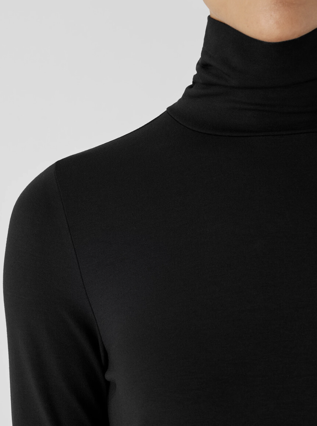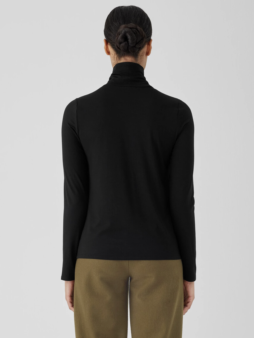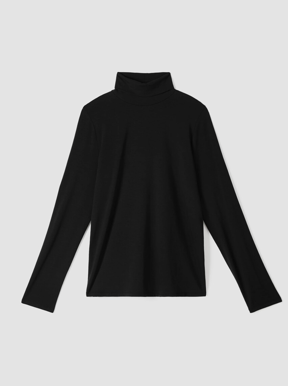 Eileen Fisher Black Fine Jersey Turtleneck Basic Length Top