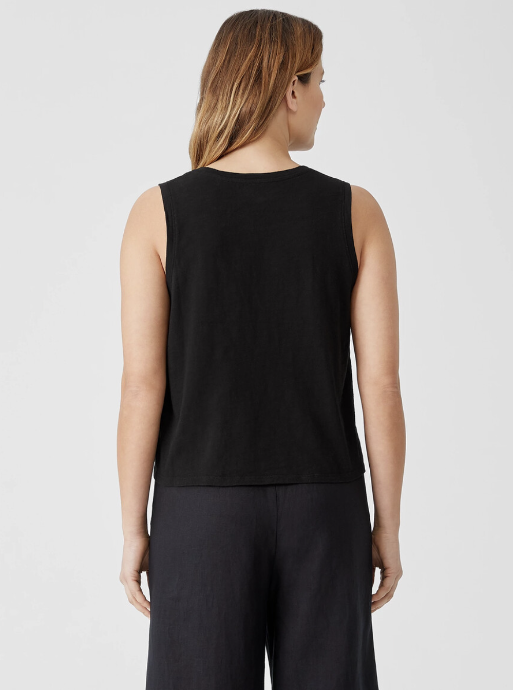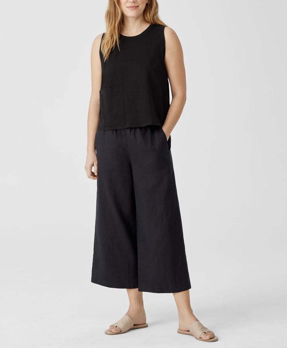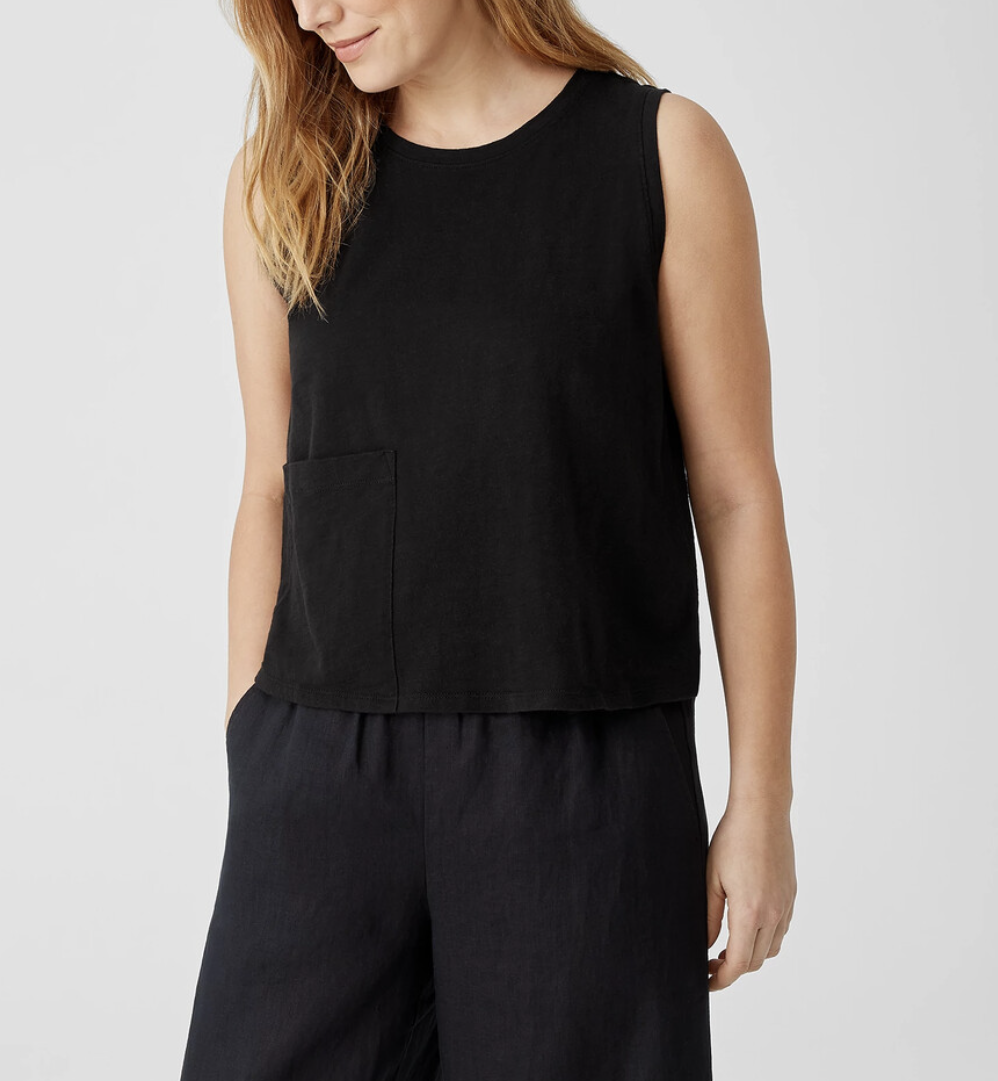 Eileen Fisher Black Organic Cotton Big Pocket Slub Crew Neck Tank