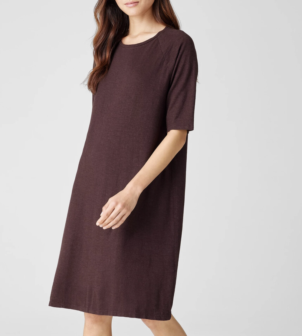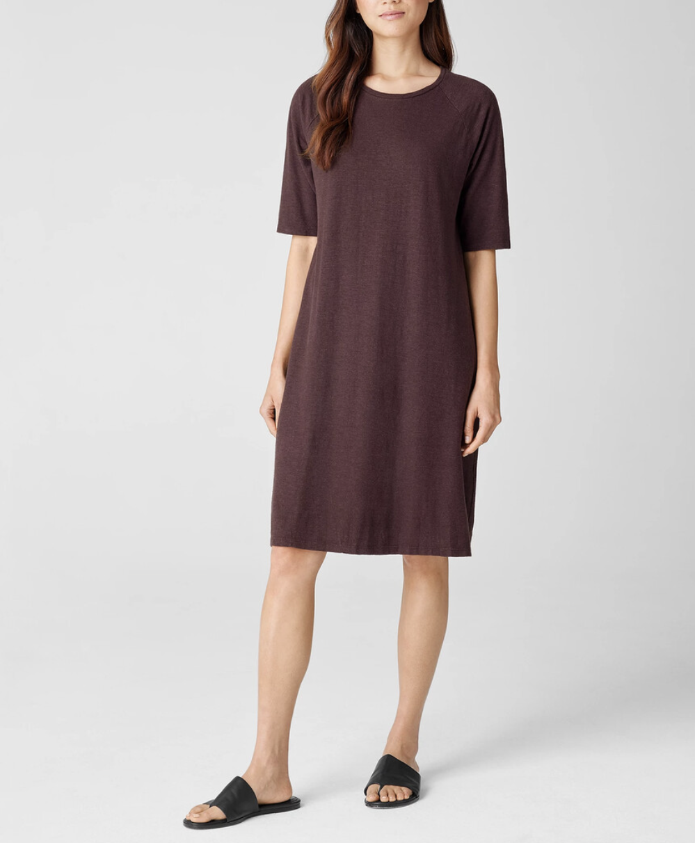 Eileen Fisher Cassis Hemp Organic Cotton Twist Crew Neck Dress