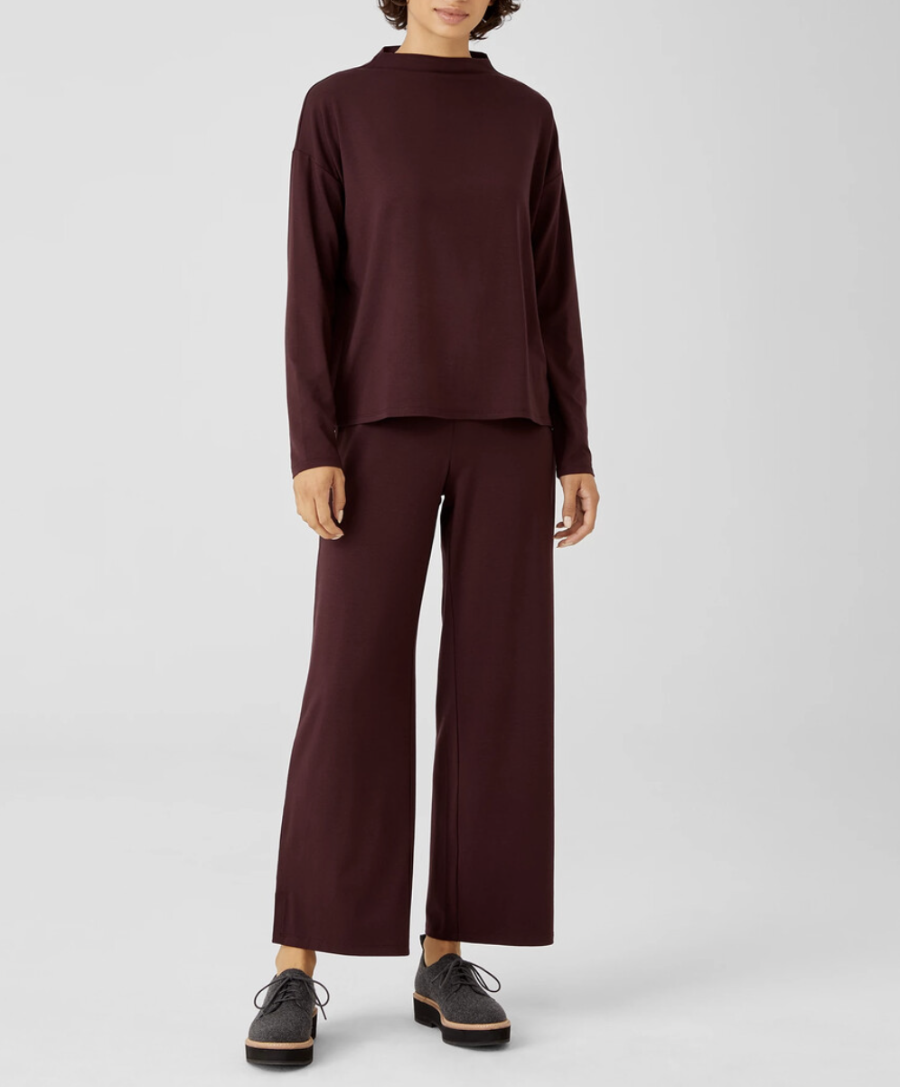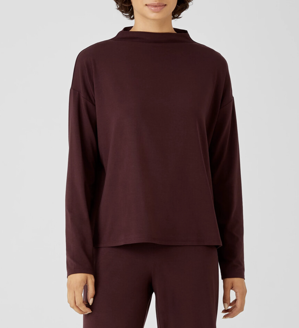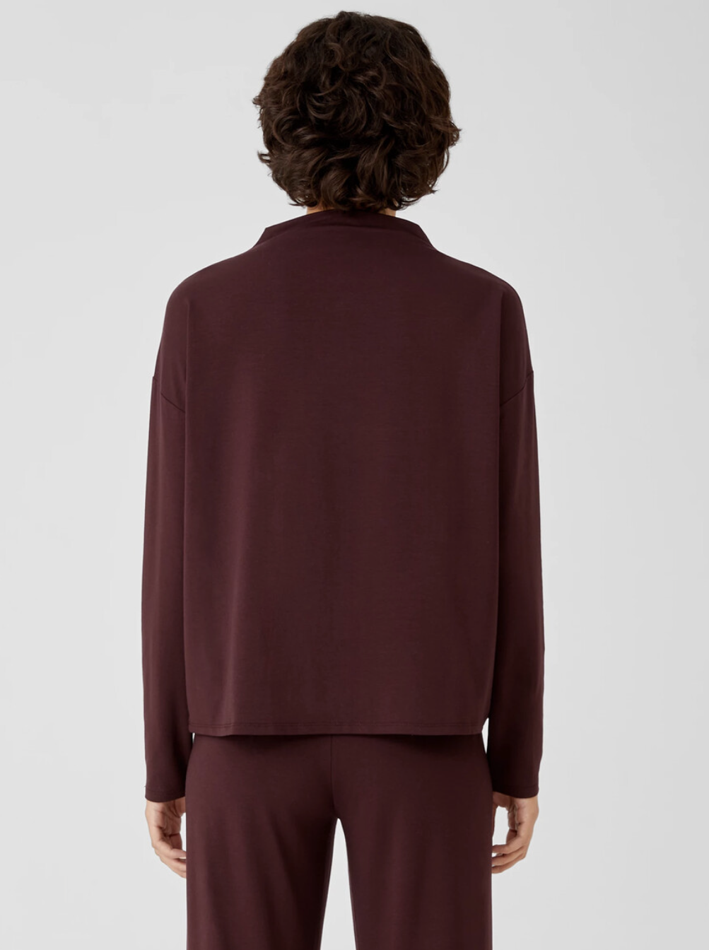 Eileen Fisher Cassis Stretch Jersey Knit Boxy Fit Funnel Neck Top