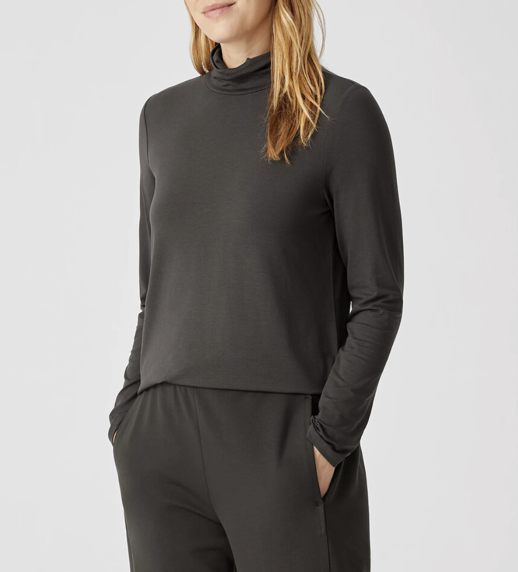 Eileen Fisher Espresso Fine Jersey Turtleneck Basic Length Top