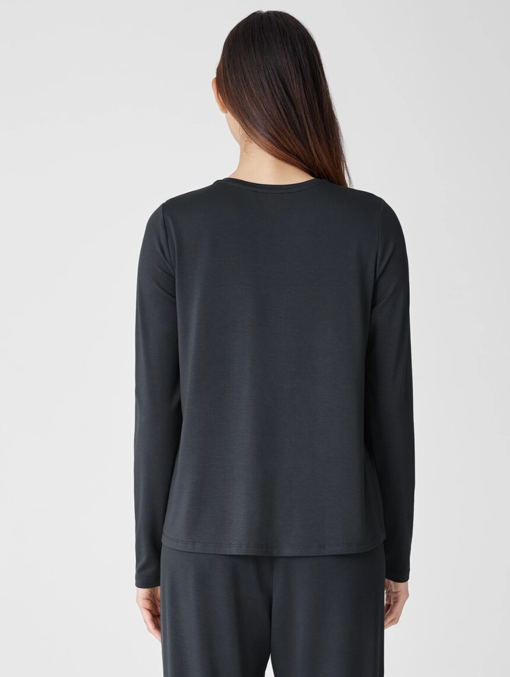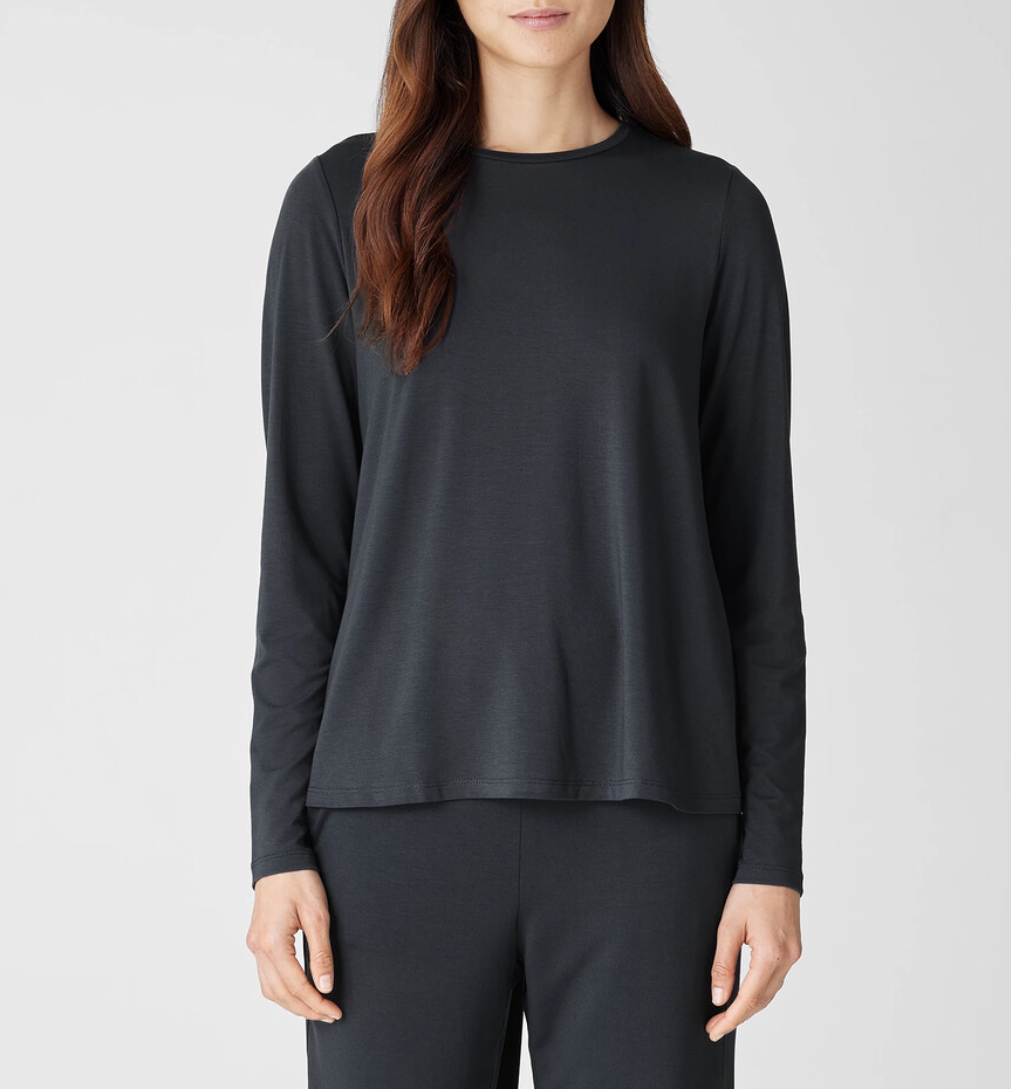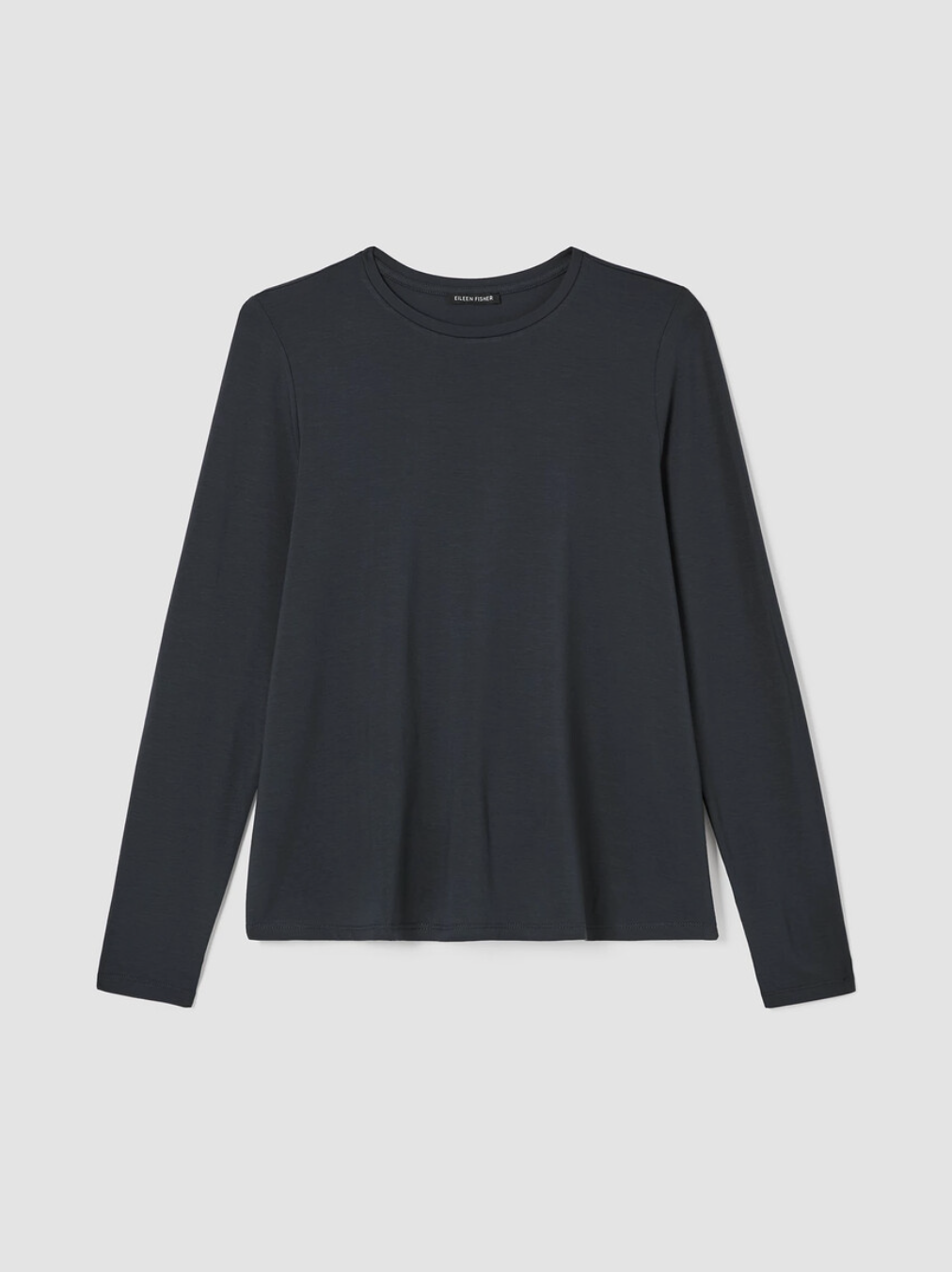 Eileen Fisher Graphite Fine Jersey Crew Neck Basic Length Top