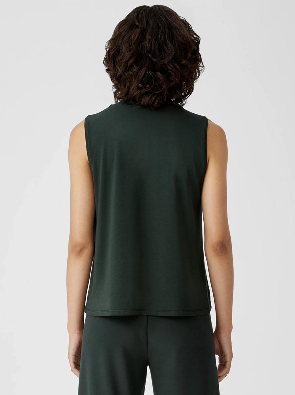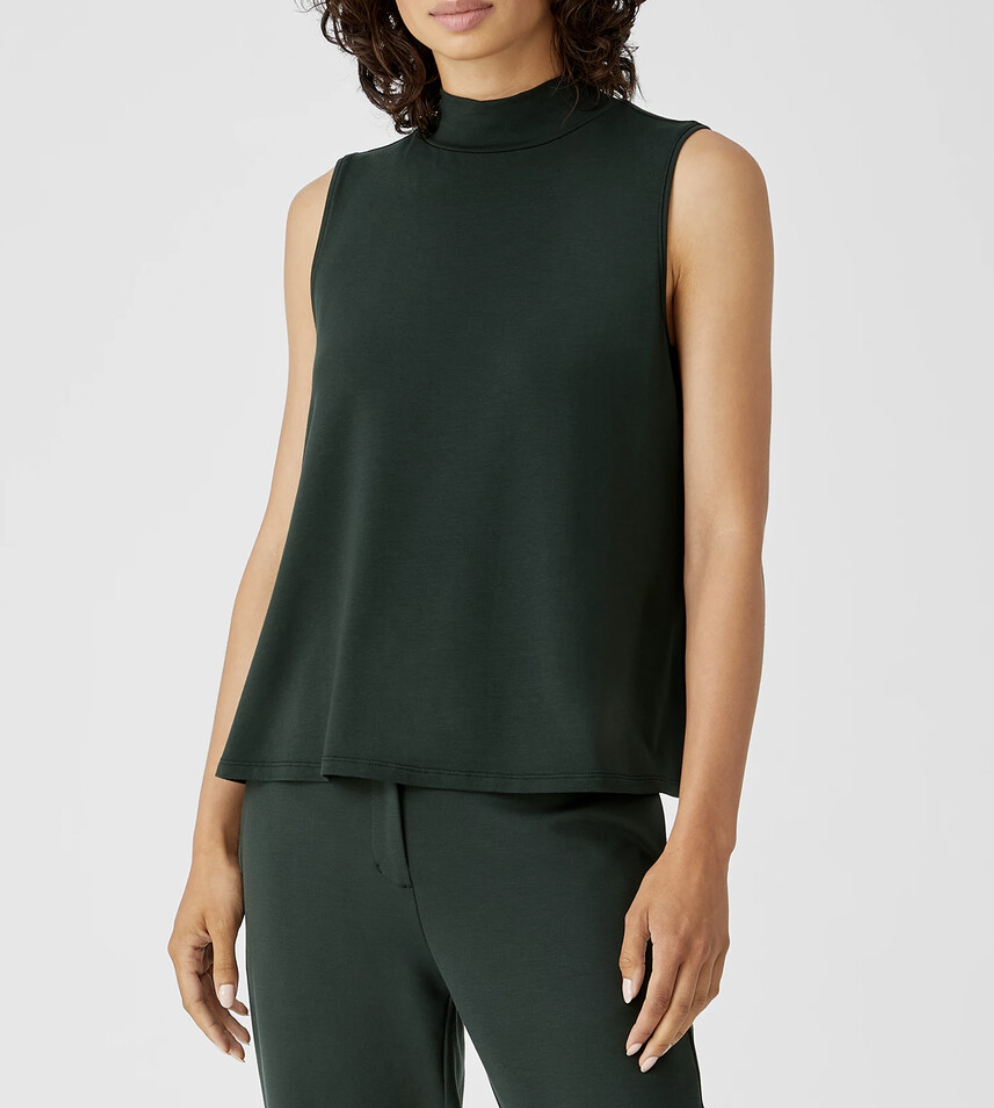 Eileen Fisher Ivy Green Long Length Fine Jersey Mock Neck Tank