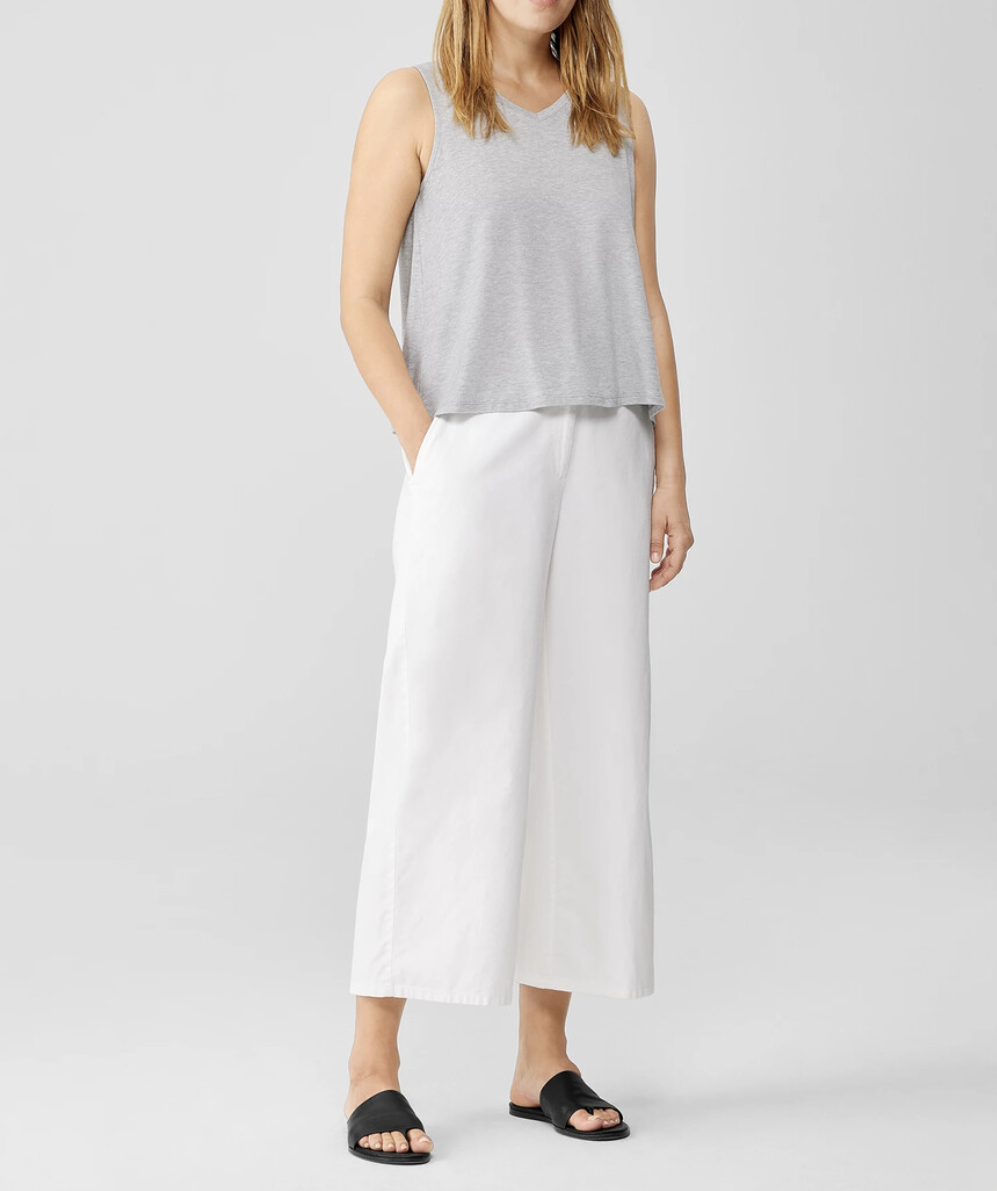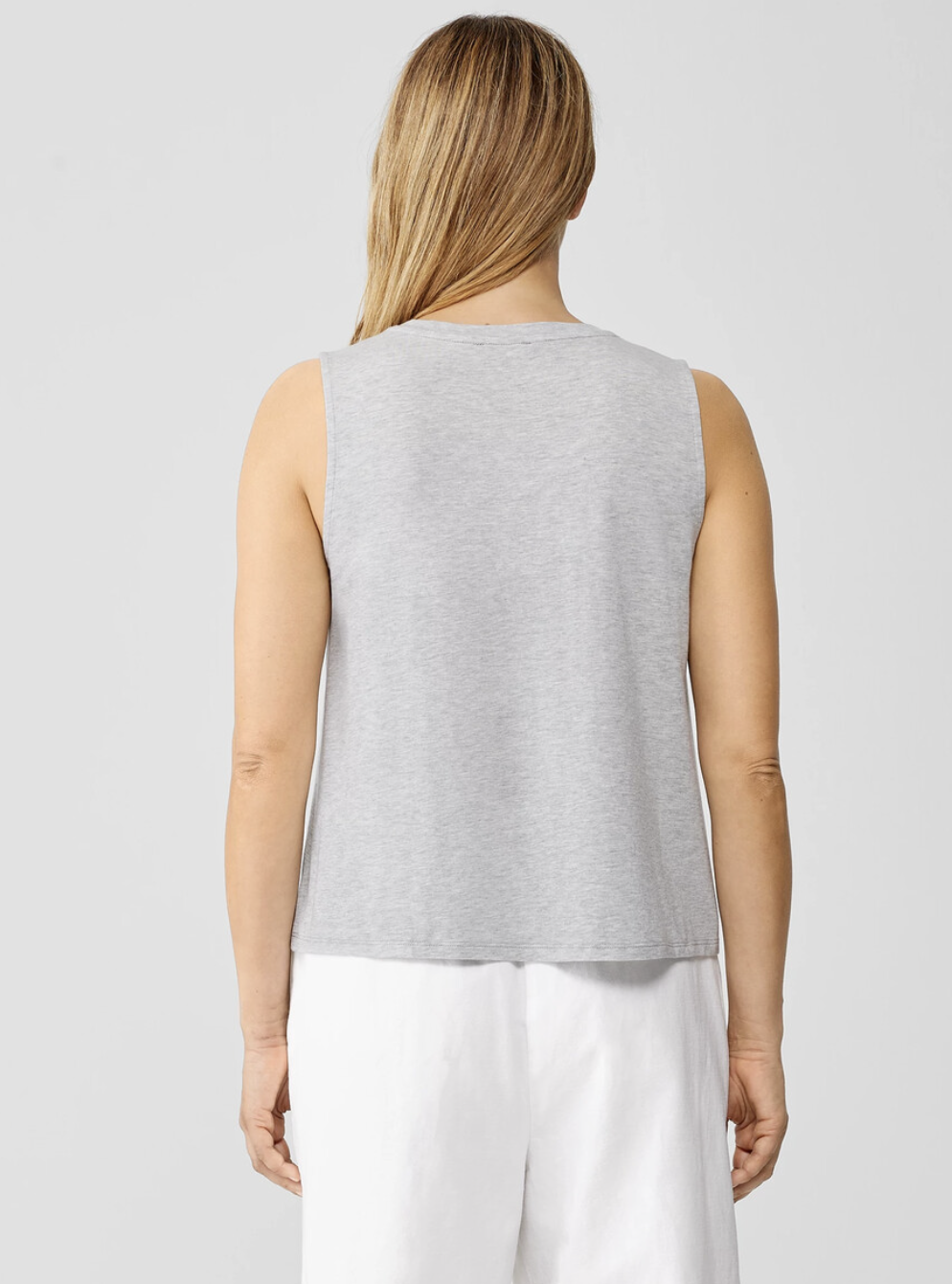 Eileen Fisher Light Heather Grey Fine Jersey V-Neck Tank
