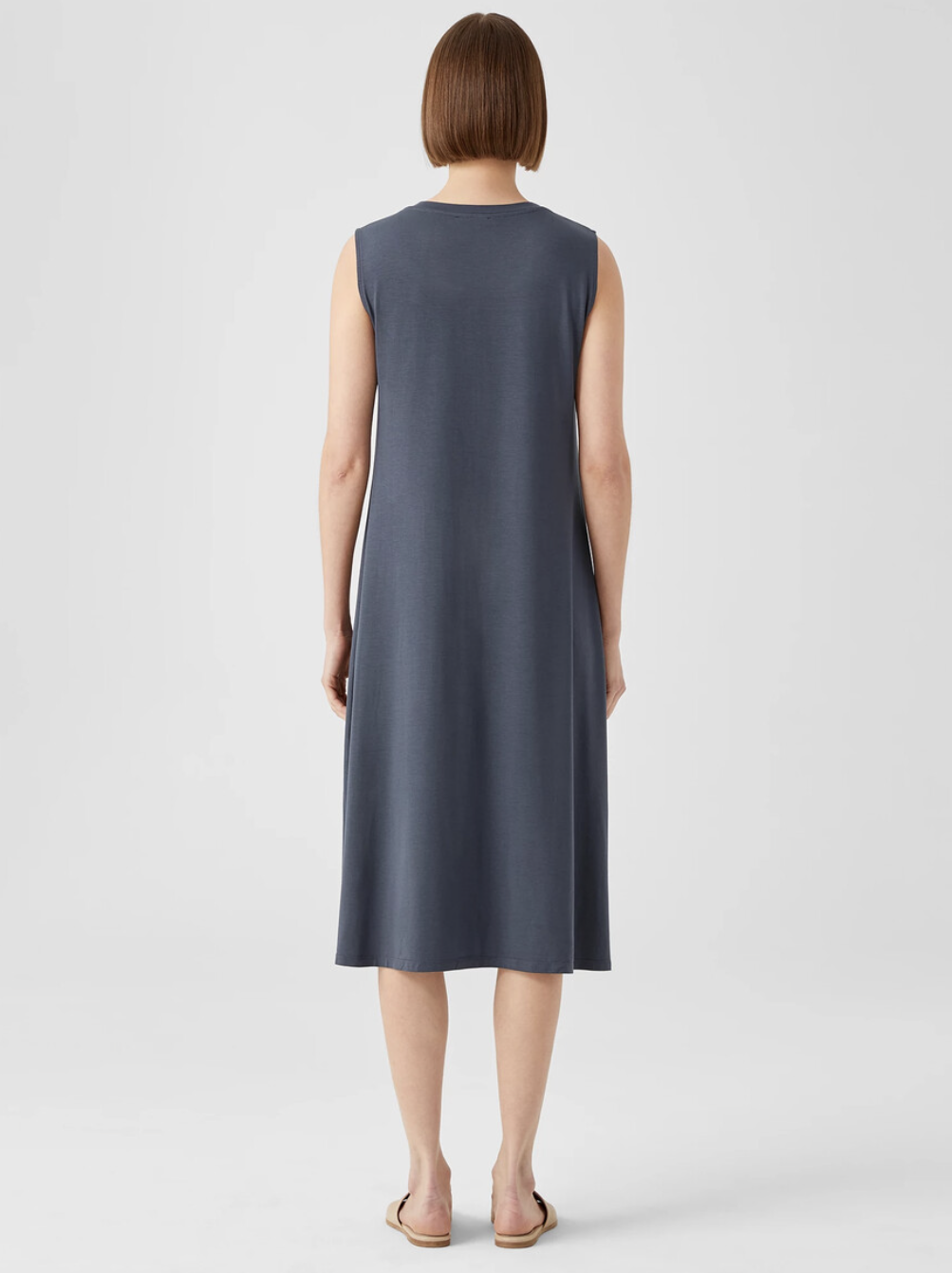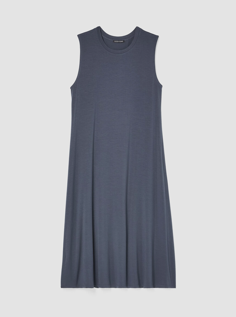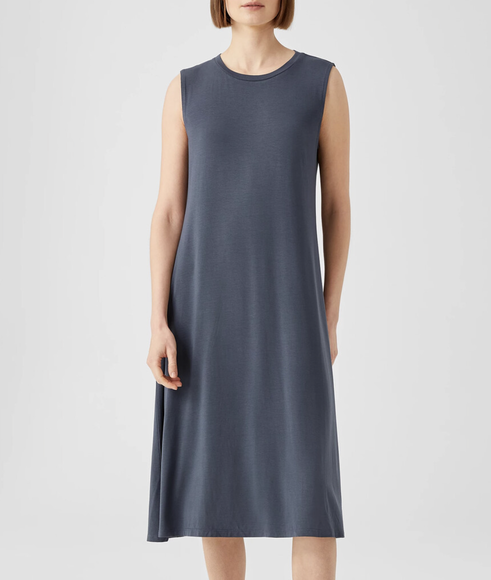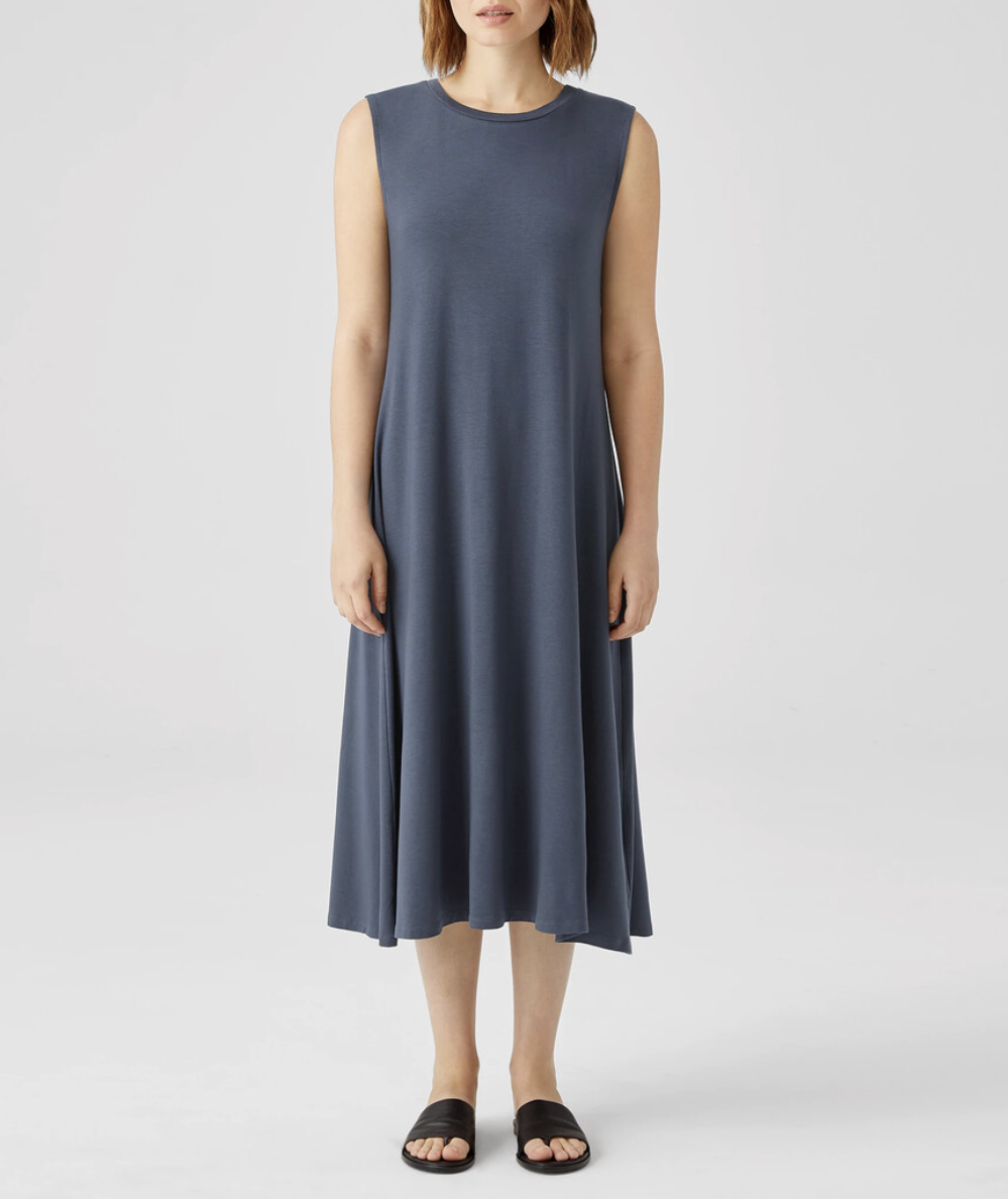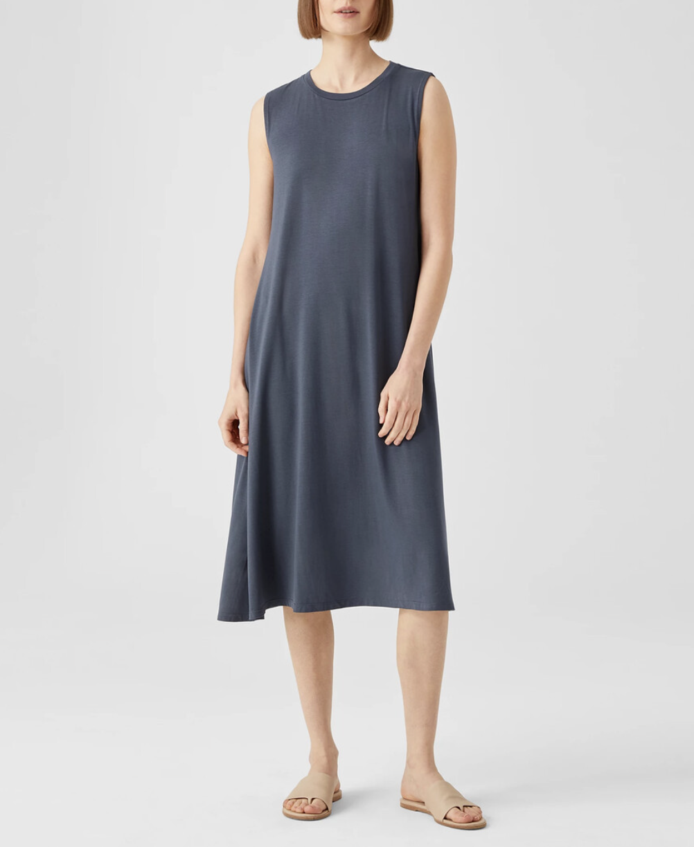 Eileen Fisher Ocean Blue Fine Jersey Crew Neck Calf Length Dress