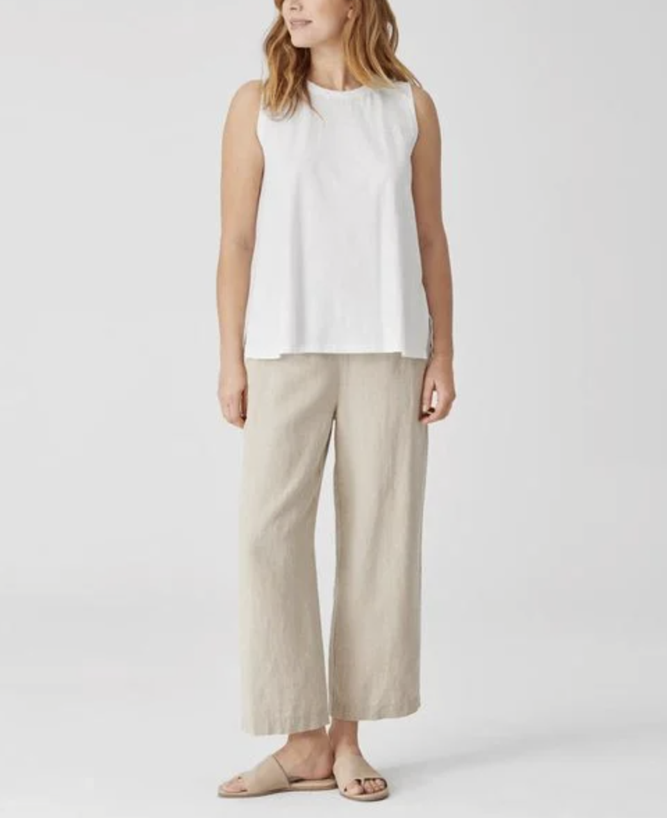 Eileen Fisher White Organic Cotton Slub Crew Neck Tank