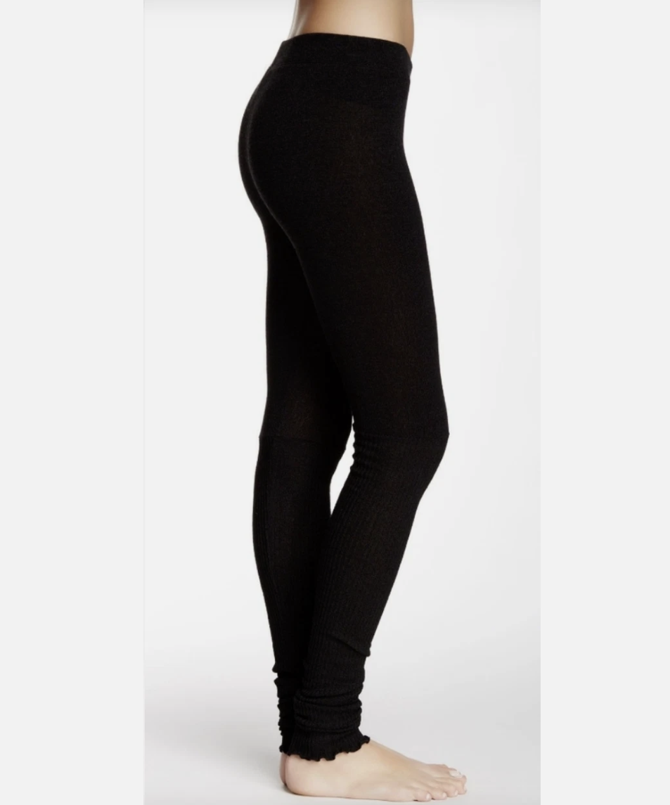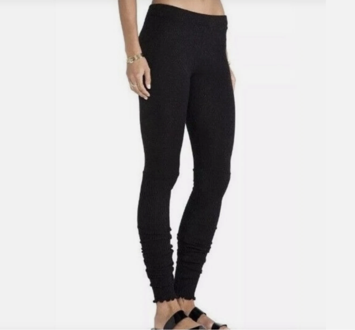 Free People Intimately Black Soft Scalloped Trim Ribbed Leggings