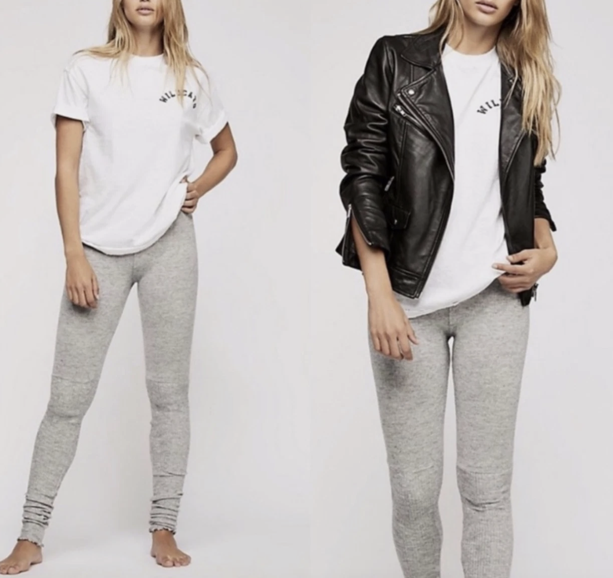 Free People Intimately Heather Grey Soft Scalloped Trim Ribbed Leggings