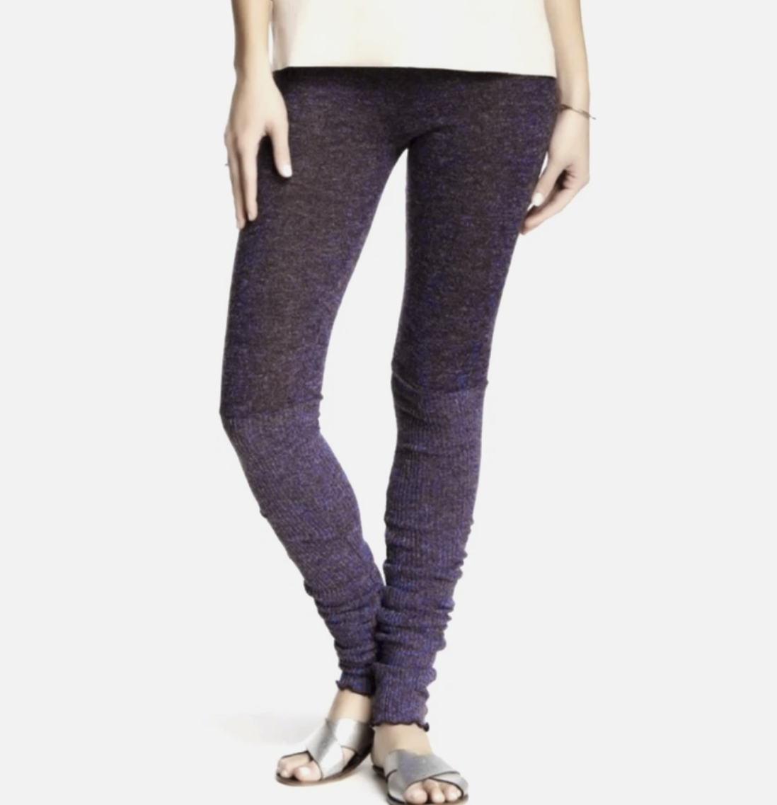 Free People Intimately Heather Purple Soft Scalloped Trim Ribbed Leggings