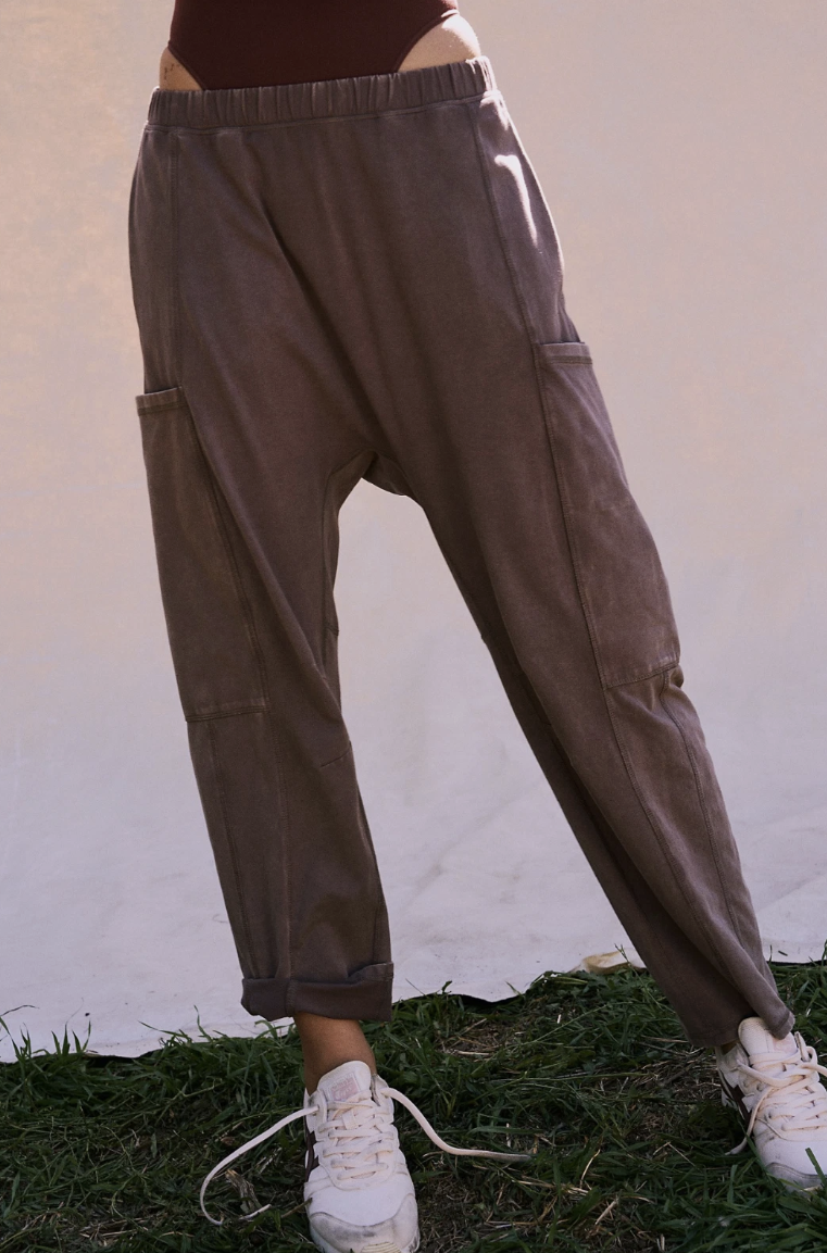 Free People Movement Charcoal Brown Hot Shot Relaxed Fit Pants