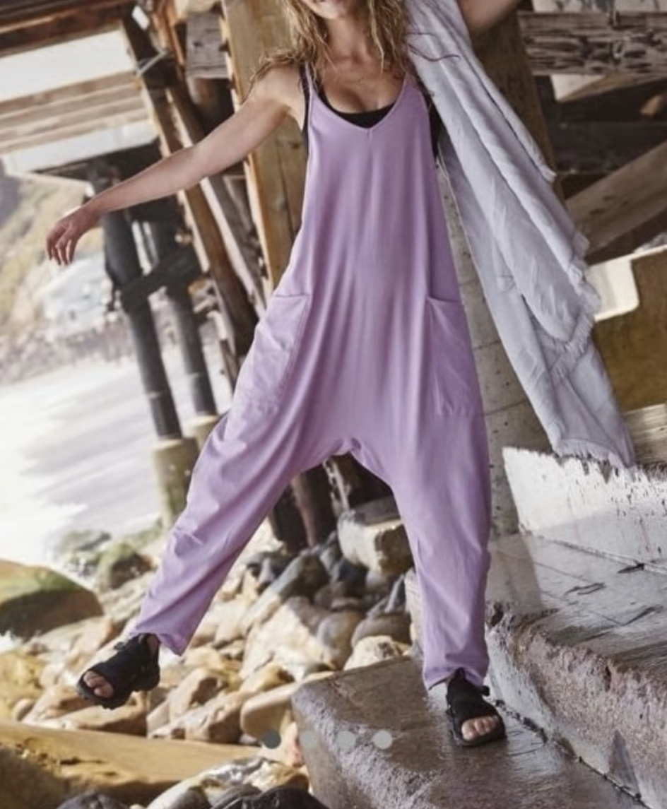 This soft and comfy onesie features a slouchy, relaxed-fitting design with a dropped crotch and convenient side pockets.