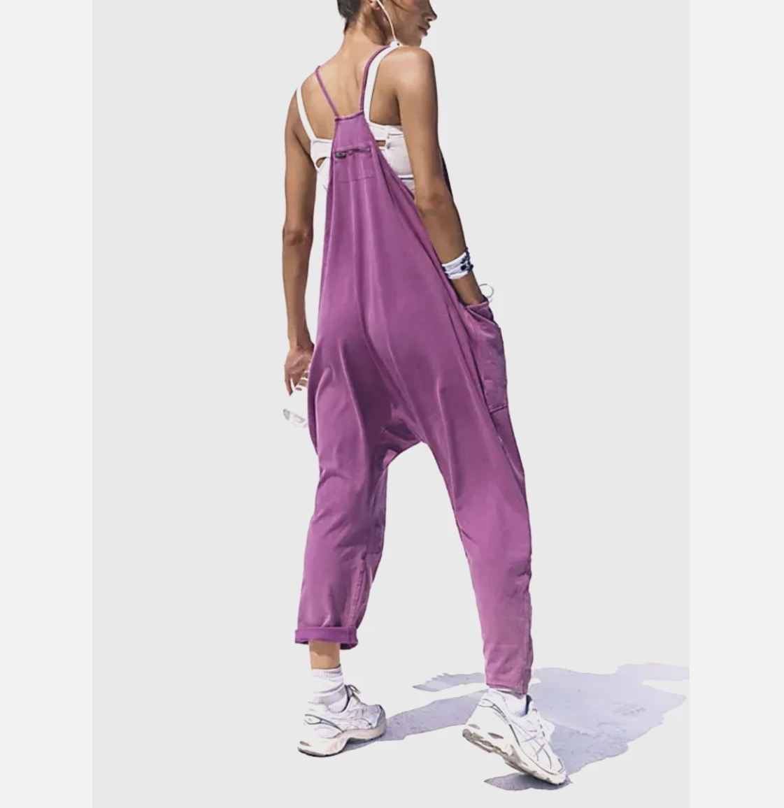 This soft and comfy onesie features a slouchy, relaxed-fitting design with a dropped crotch and convenient side pockets.