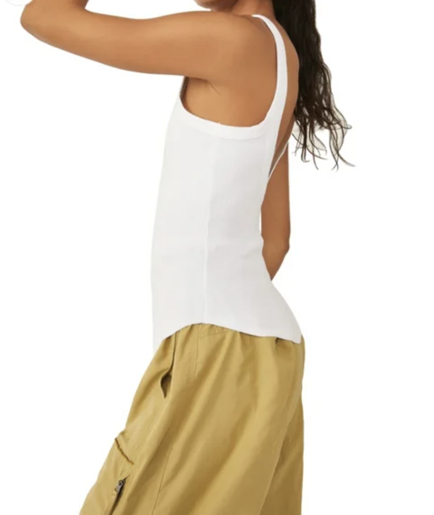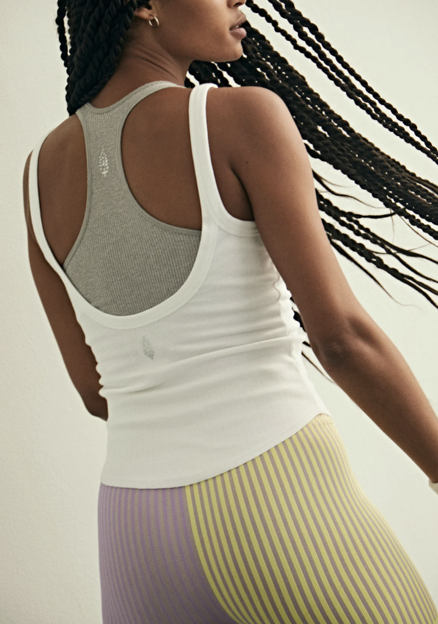 Free People Movement Painted White Sleeveless Ribbed One Step Tank Top