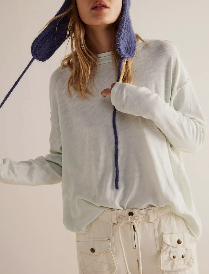 Free People We The Free Opal Blue Long Sleeve Regan Tee