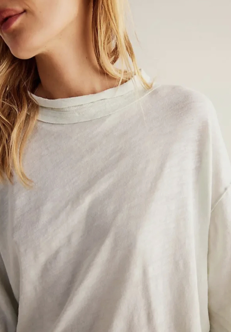 The definition of an effortless essential, this goes-with-anything tee is featured in a staple long sleeve silhouette with exposed seaming and raw hems for a true lived-in look.