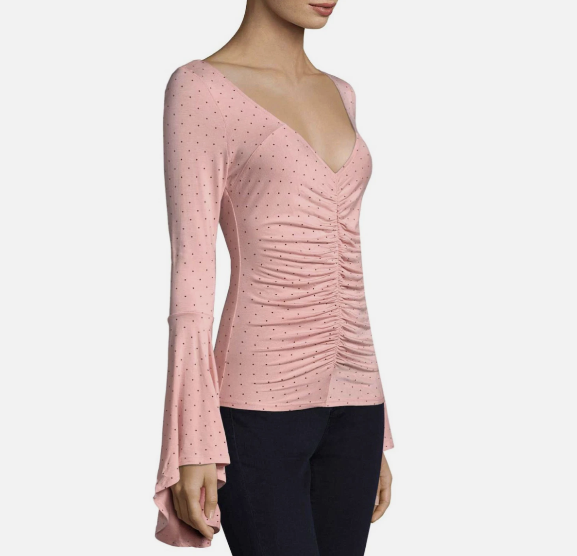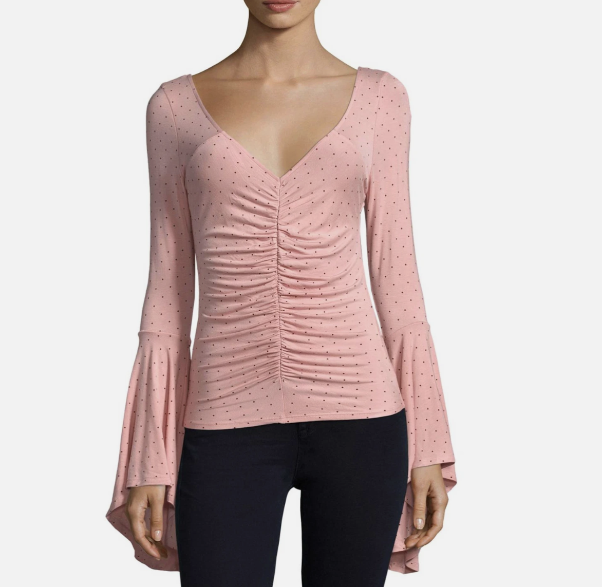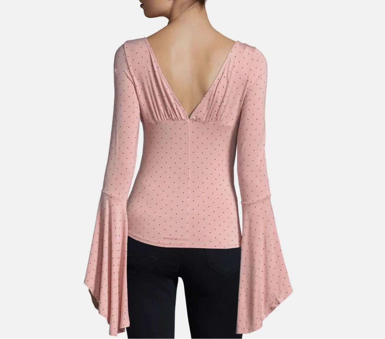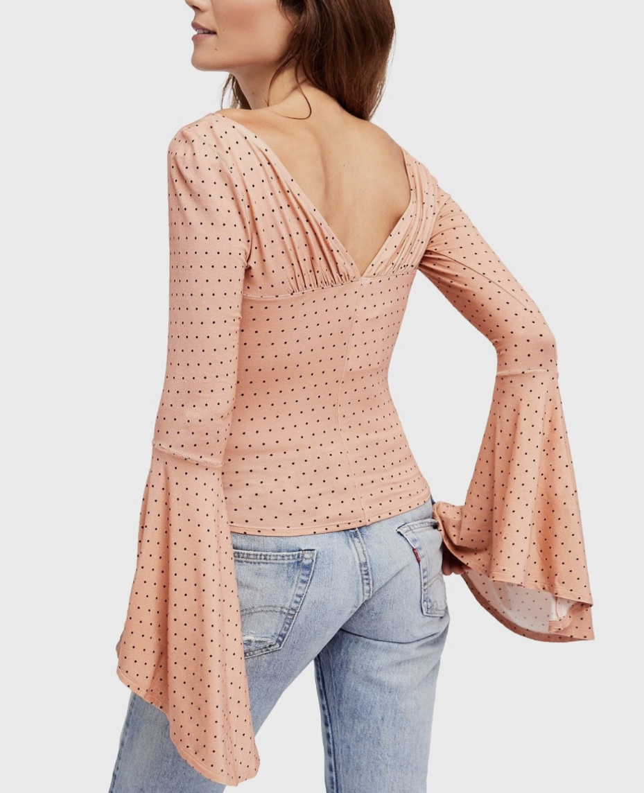 Free People We The Free Pink Polka Dot Printed Bell Sleeve What A Babe Top