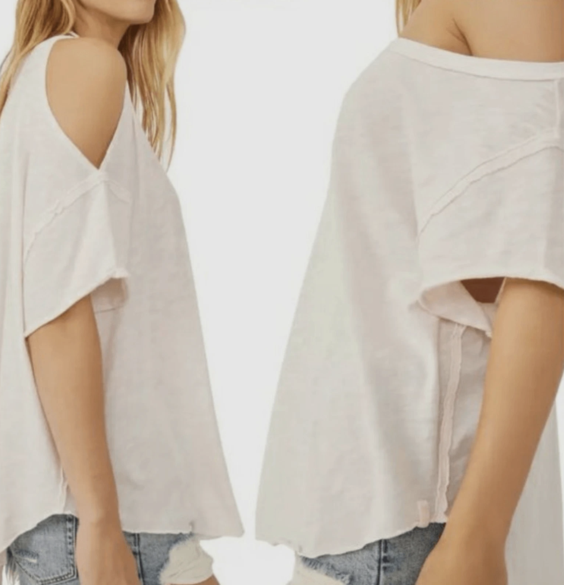 Add the most timeless touch to any look with this forever effortless tee featured in a slouchy, relaxed fit with cutout detailing at shoulder and rounded bottom hem for added shape.