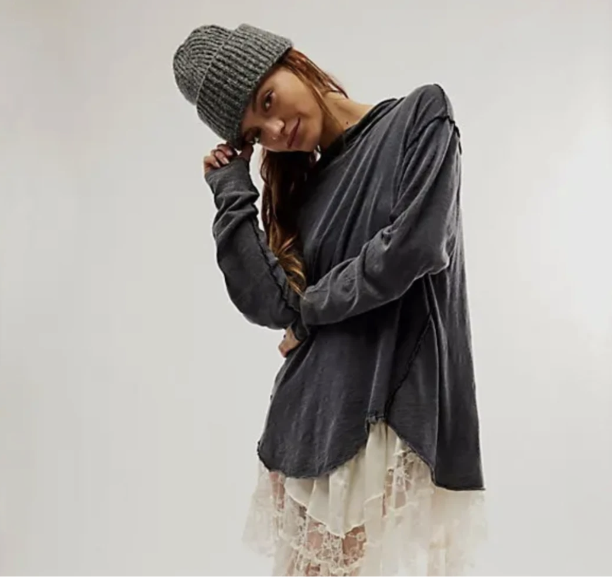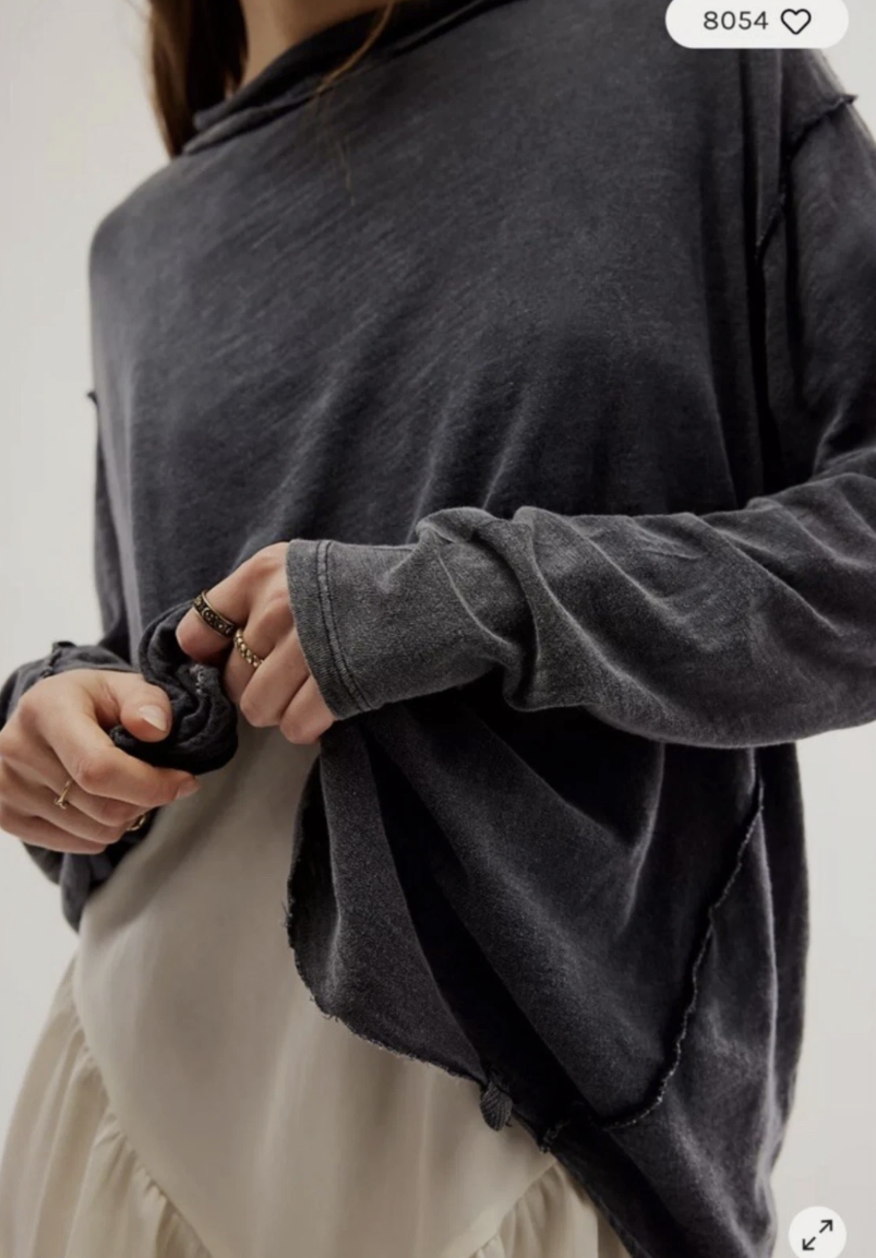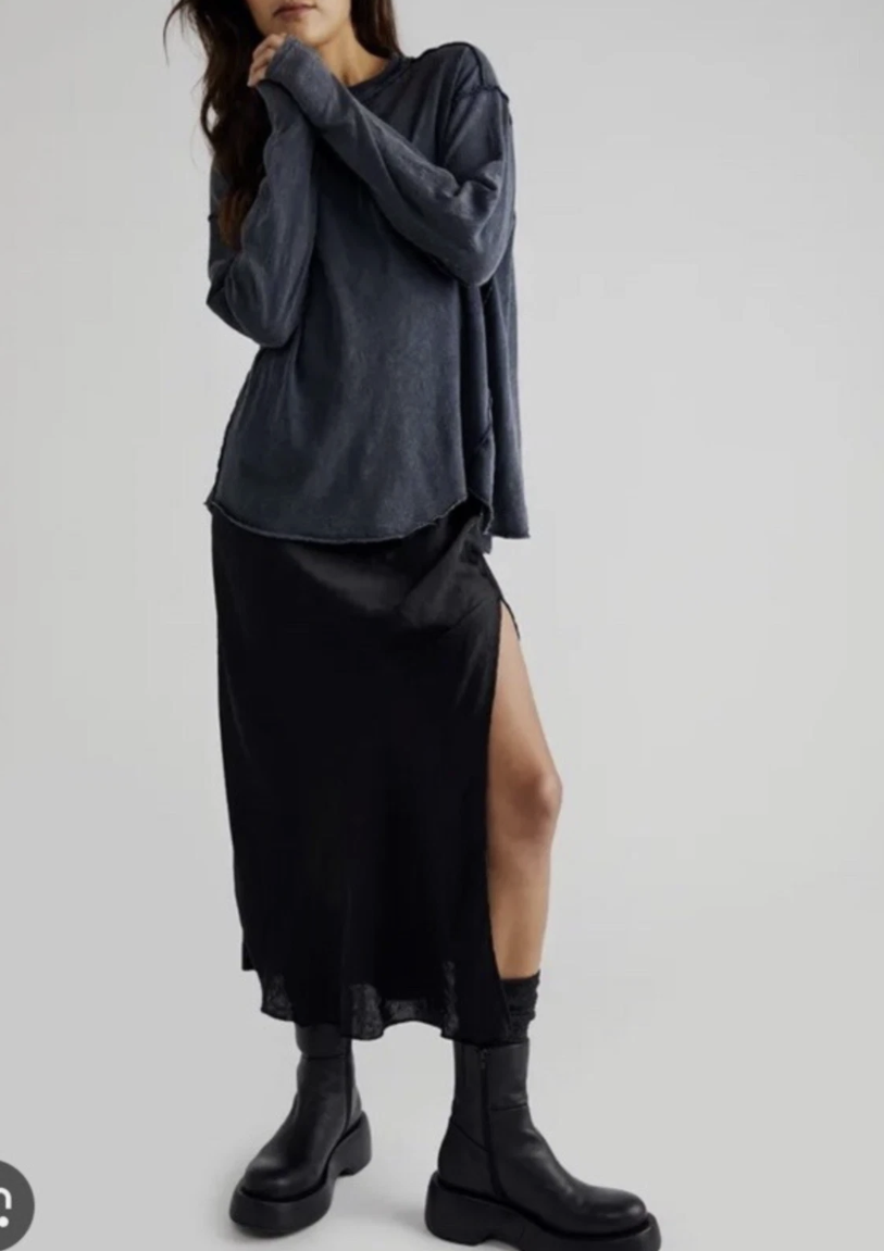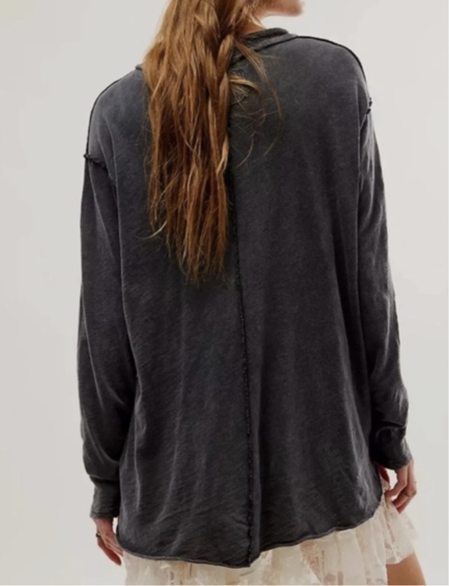 Free People We The Free Washed Black Long Sleeve Regan Tee
