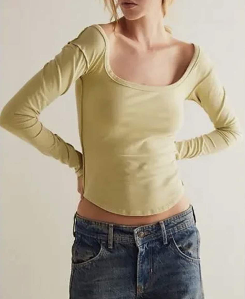 Just as cool as it is classic, this effortlessly essential tee is featured in a staple long sleeve silhouette with slightly square neckline, defined seaming, and rounded bottom hem for added shape.