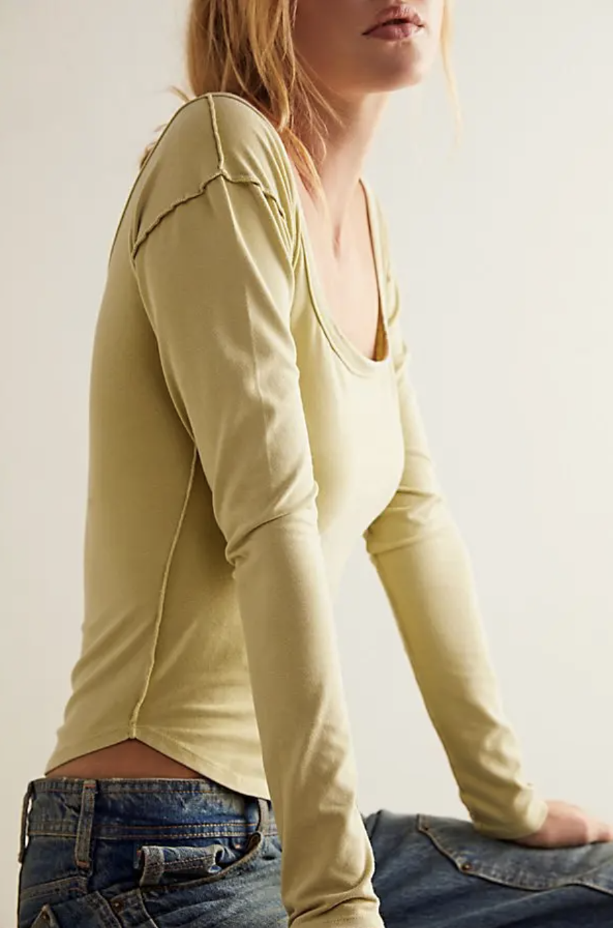 Free People We The Free Moss Green Long Sleeve Can't Let Go Tee