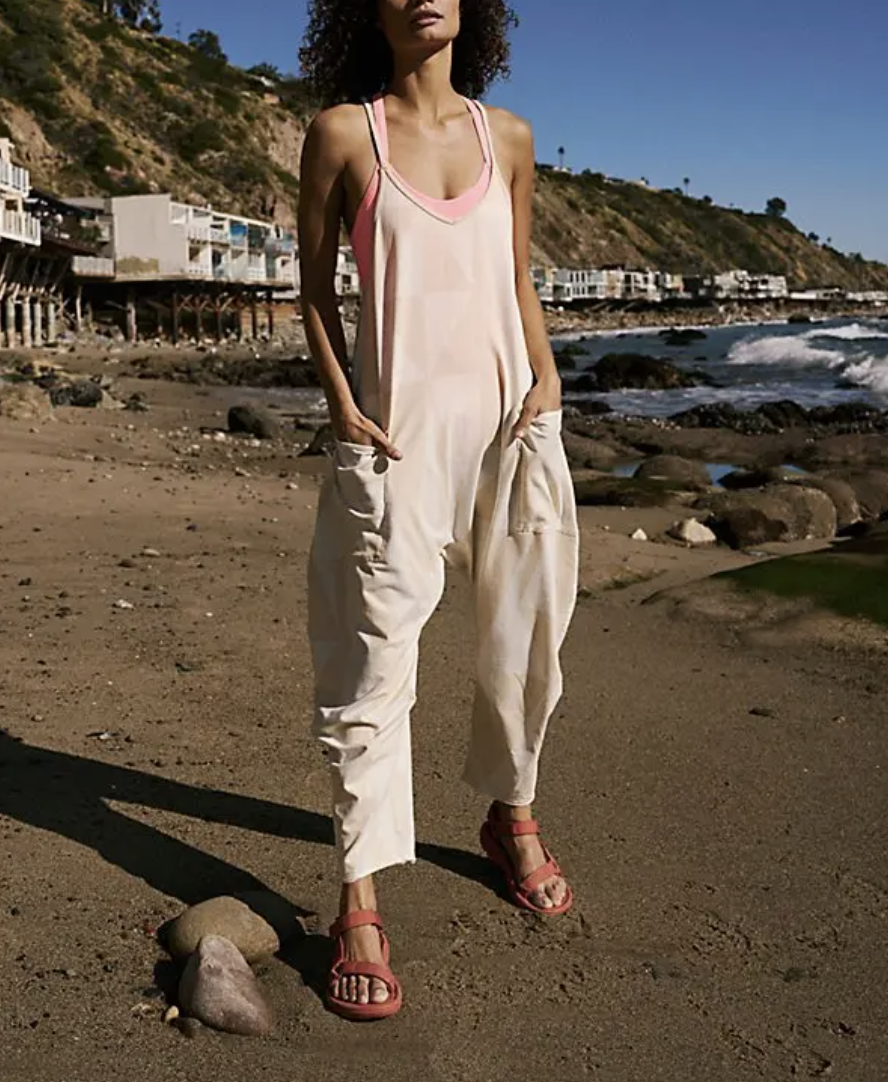 This soft and comfy onesie features a slouchy, relaxed-fitting design with a dropped crotch and convenient side pockets.