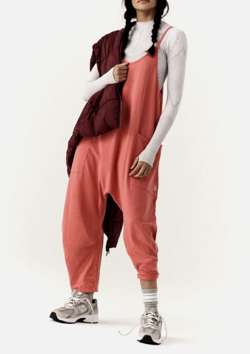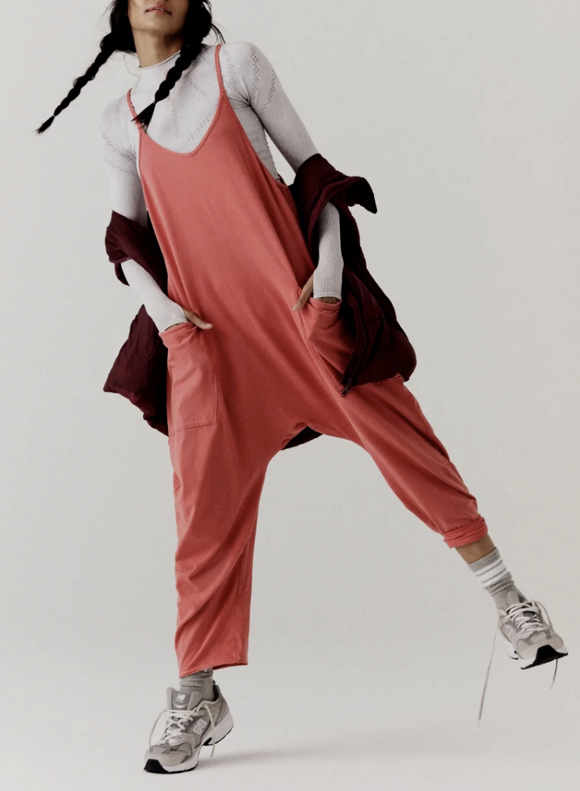 This soft and comfy onesie features a slouchy, relaxed-fitting design with a dropped crotch and convenient side pockets.