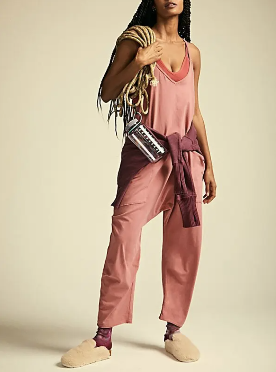 This soft and comfy onesie features a slouchy, relaxed-fitting design with a dropped crotch and convenient side pockets.
