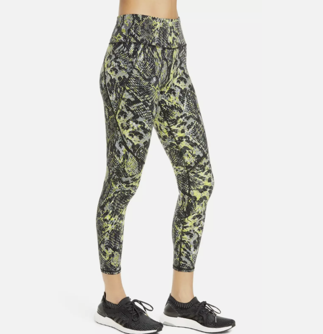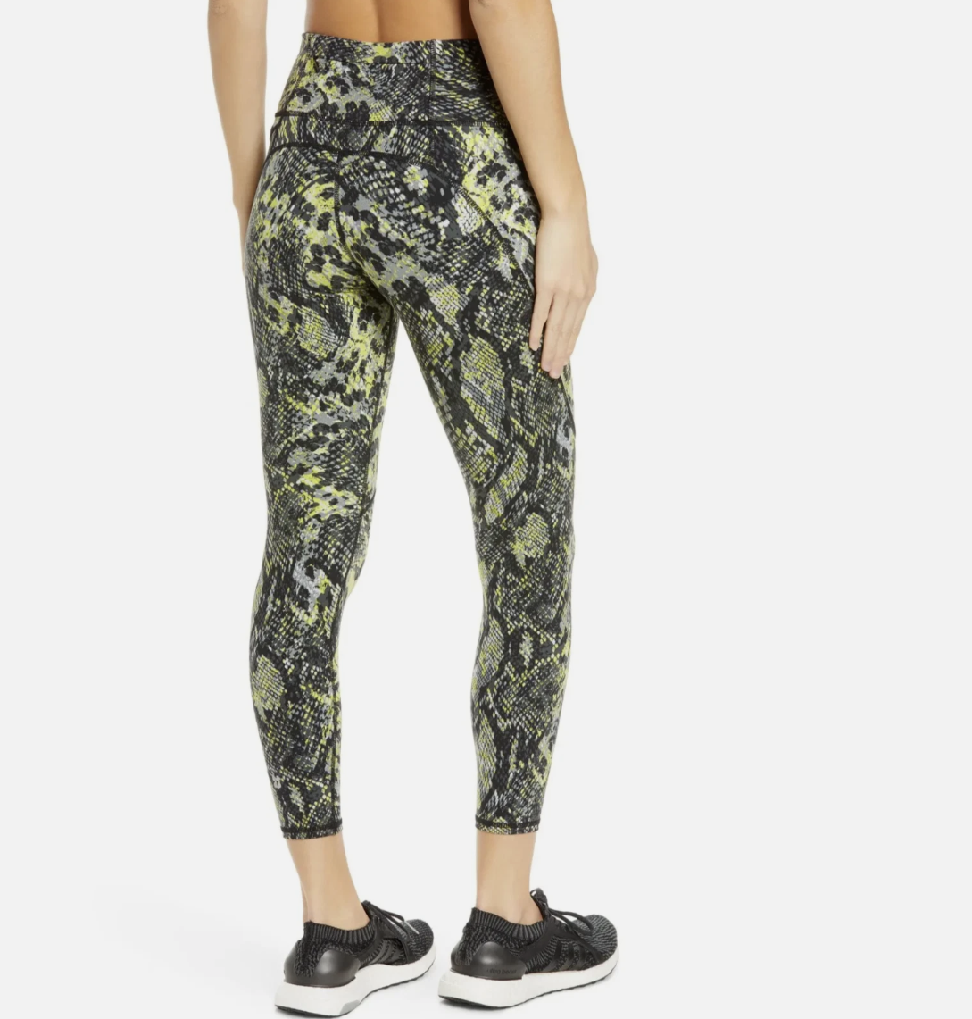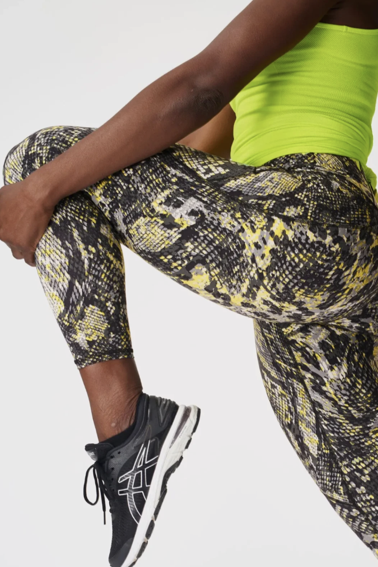 Sweaty Betty Citrus Green Snake Print 7/8 Length Power Workout Leggings